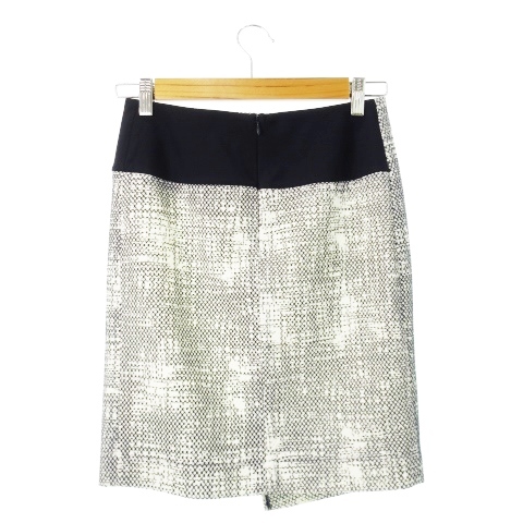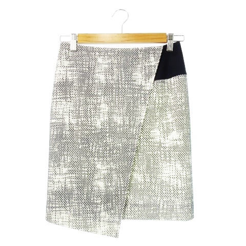 デュアルヴュー スカート タイト ひざ丈 ラップデザイン ストレッチ メッシュ 切替 プリント モザイク 40 黒 ブラック /CK16 レディース