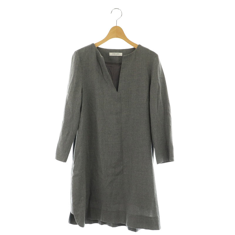 アドーア ADORE ウール キーネック ワンピース ミニ 長袖 38 グレー /MY ■OS レディース