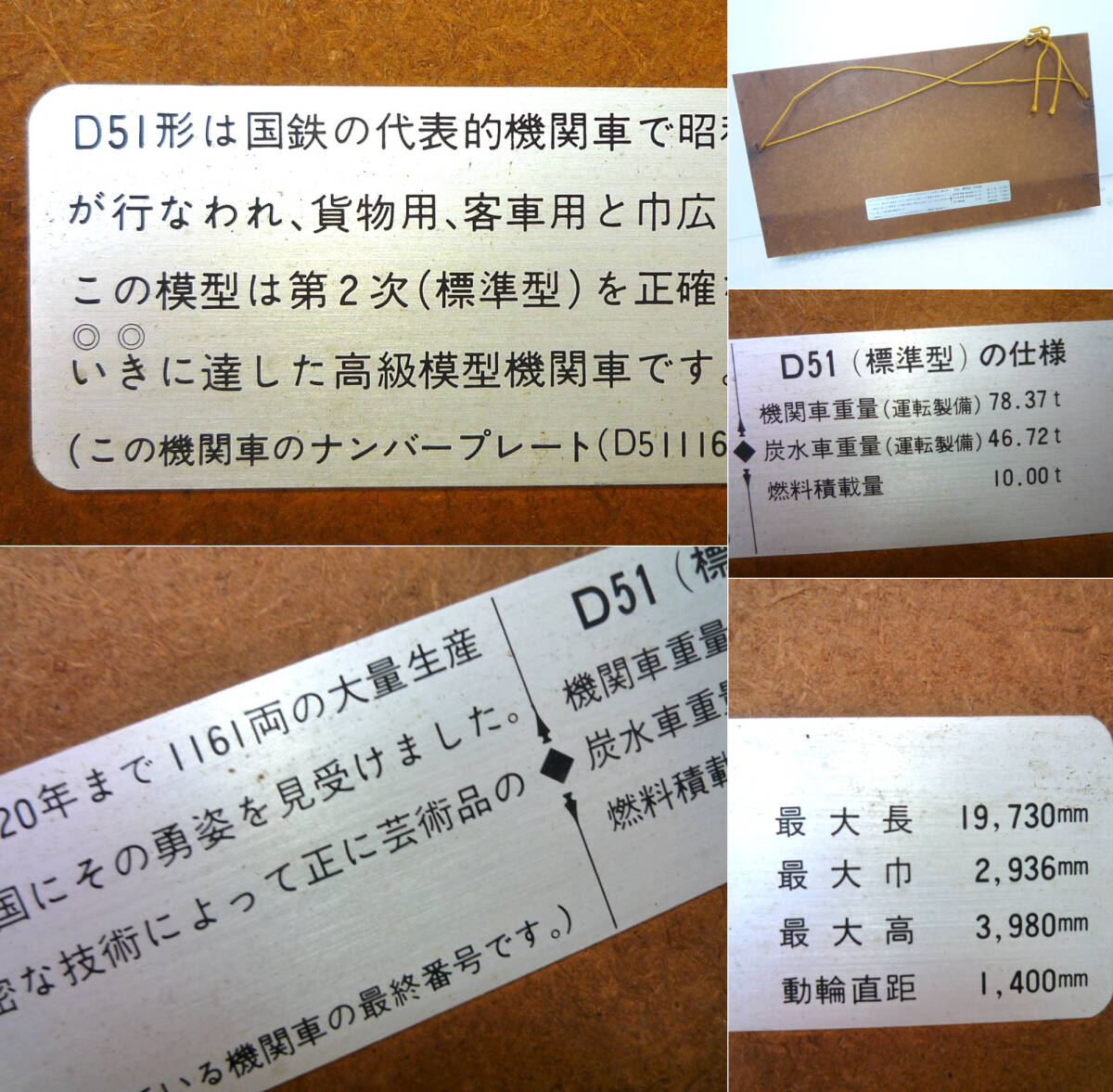 鉄道模型額入 非売品 D51型 蒸気機関車 電車模型 額入 デゴイチ SL 国鉄 金属工芸 鉄道関連グッズ 最終ナンバー D511160 当時物 お得 レア