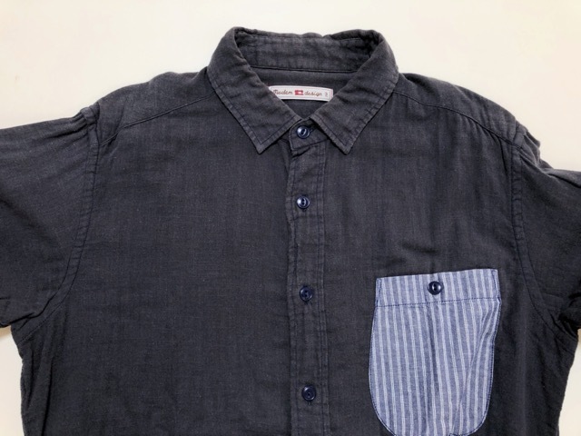 modem design(モデムデザイン)ヒッコリーストライプポケット 長袖シャツ【E4950-007】
