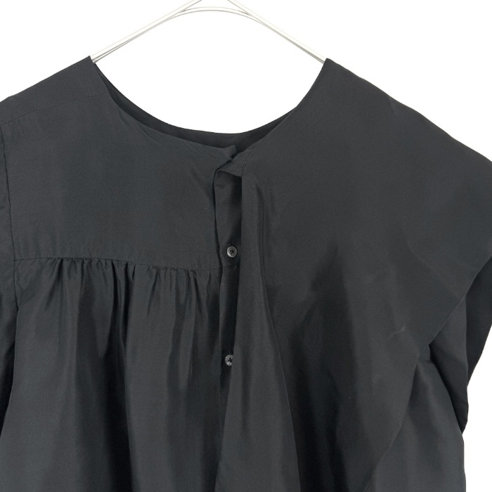 | 【コメント】 肩部分に太リボンが付いたノースリーブブラウスです。アレンジ自在。リボン部分に白い汚れがありますが、傷みはなく全体的に綺麗なお品物です。 |