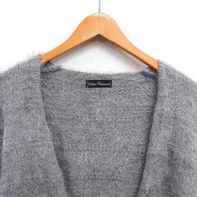 アーバンリサーチ URBAN RESEARCH シャギーニット カーディガン オープン ロング リブ ゆったり 長袖 F グレー /NT4 レディース