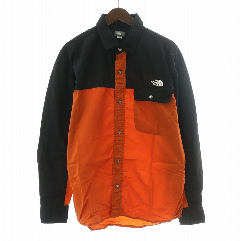 ザノースフェイス THE NORTH FACE ロングスリーブヌプシシャツ 長袖 レギュラーカラー ナイロン ロゴ 刺繍 切替 オレンジ 黒 NR11961