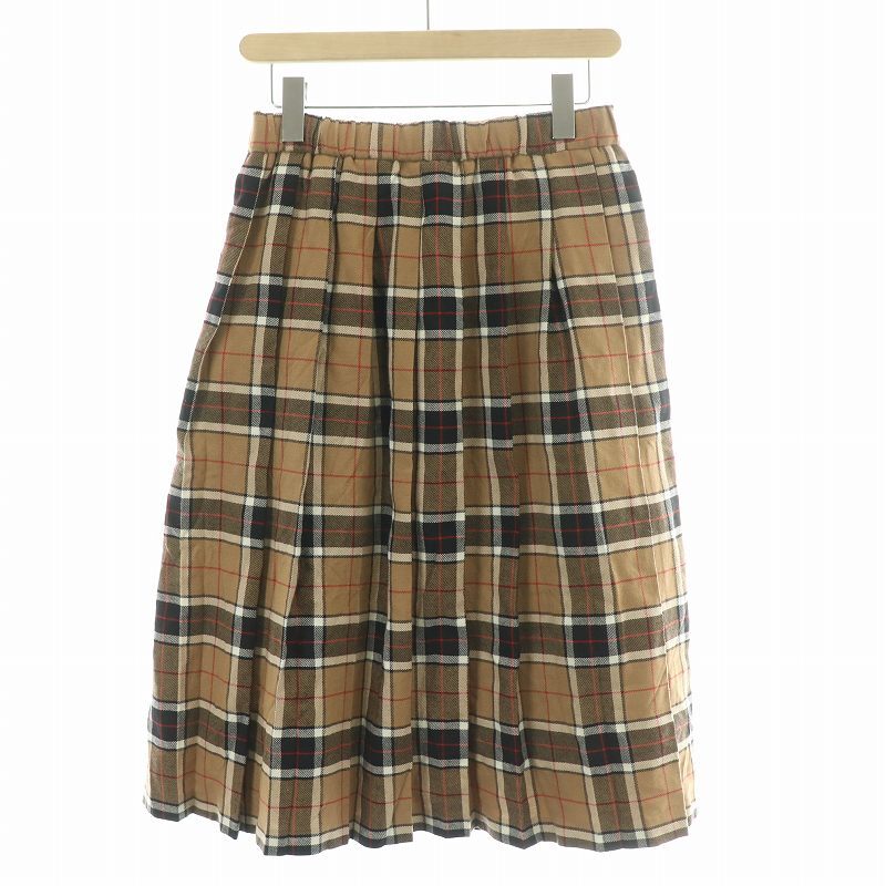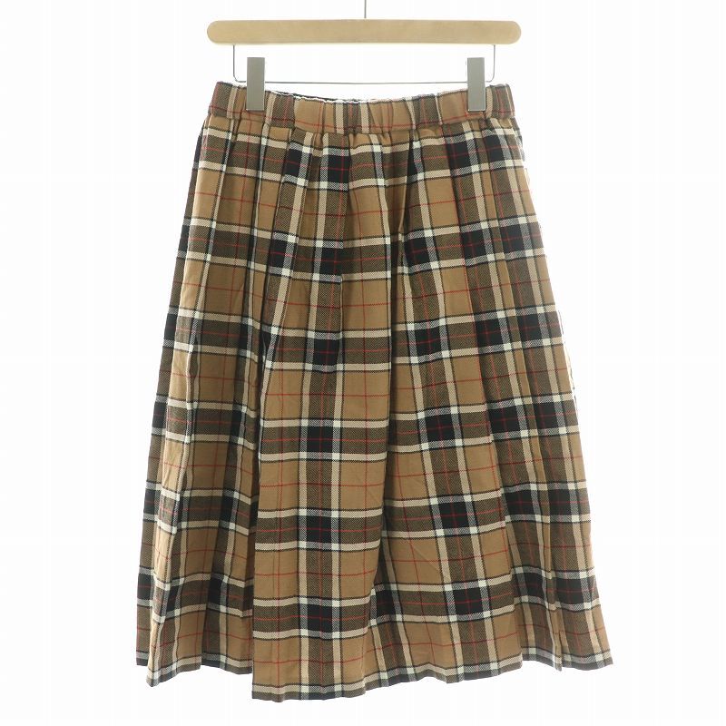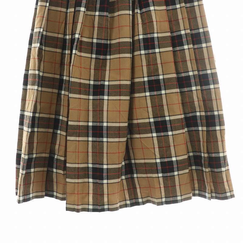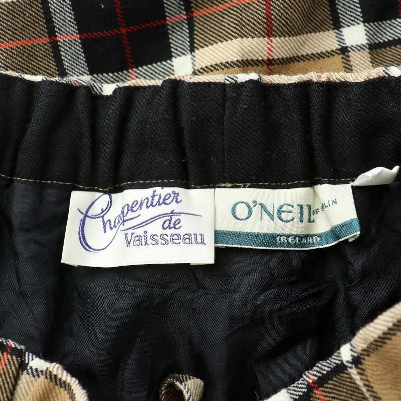 オニール オブ ダブリン O'NEIL OF DUBLIN フレアスカート ギャザー プリーツ ミモレ ロング ウエストゴム チェック柄 ウール 1 茶 赤