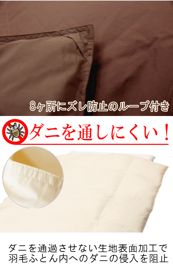 立体キルト ダウンプルーフ加工 カバー用ループ8ヵ所