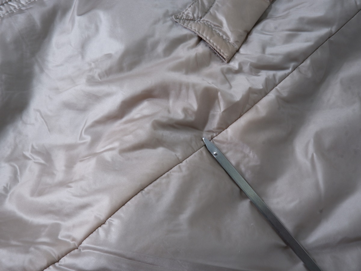 ナイロン100% 中綿ポリエステル100% 裏地チェック部分キュプラ 無地部分ナイロン 付属部分・牛革 |