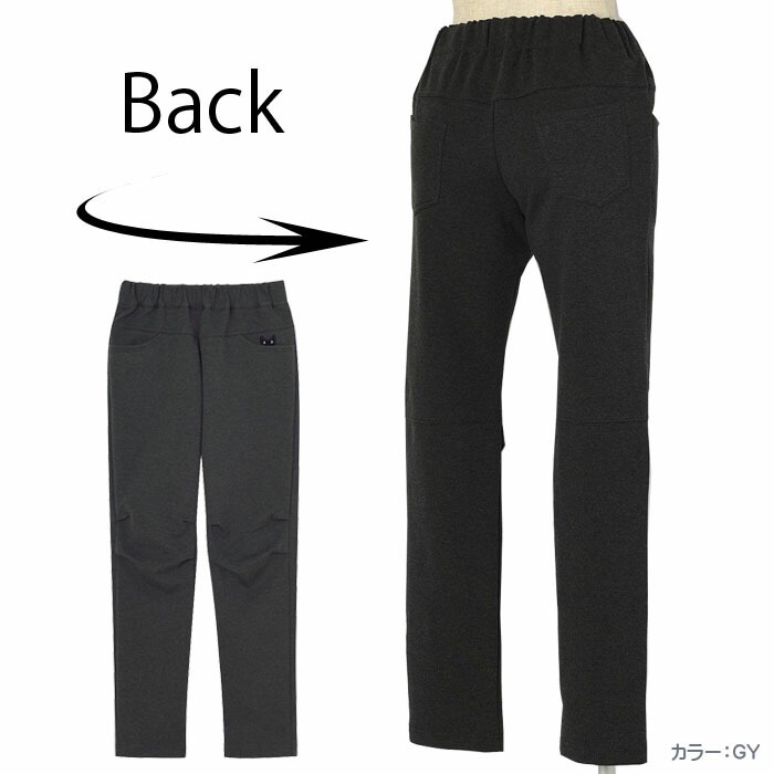 ひざ部分にタックを入れることで、ひざが出にくく、曲げやすい設計。