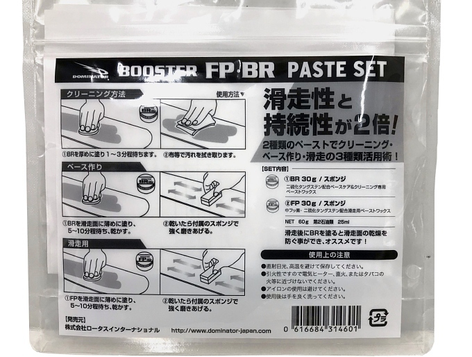 商品の説明 | 特別価格!早い者勝ち! DOMINATOR BOOSTER FP/BRペーストセット新品 ノンアイロンWAXセット クリーニング&ベースWAXと滑走WAXをセットにしたお得な3点セットです! NOアイロンWAXですので、イージーにスピーディーに対応できる、 大人気WAXです BR ベース&クリーニング専用ペーストWAX ■内容量:30g FP 滑走用ペーストWAX ■内容量:30g2層スポンジ付き ■定価 \4,200(税込¥4,620)⇒特別価格¥3,900スタート |