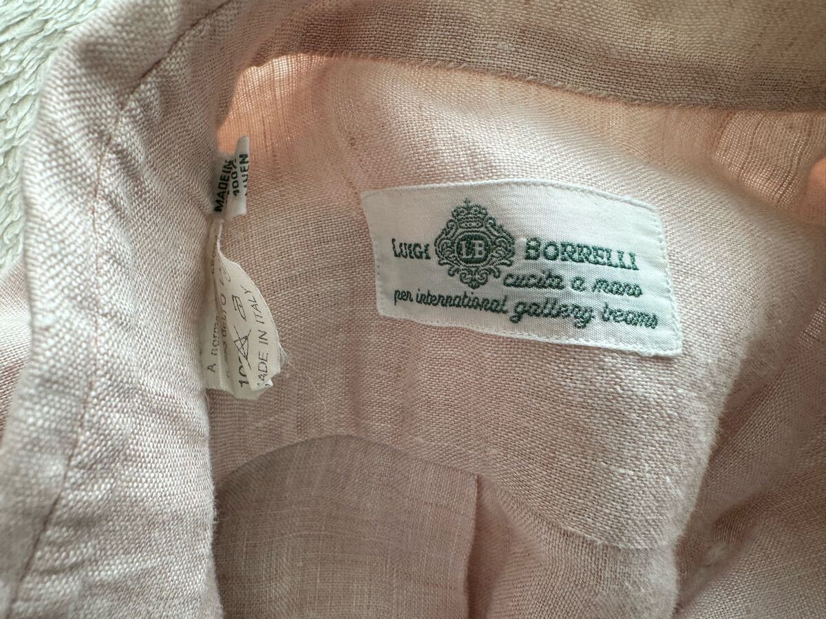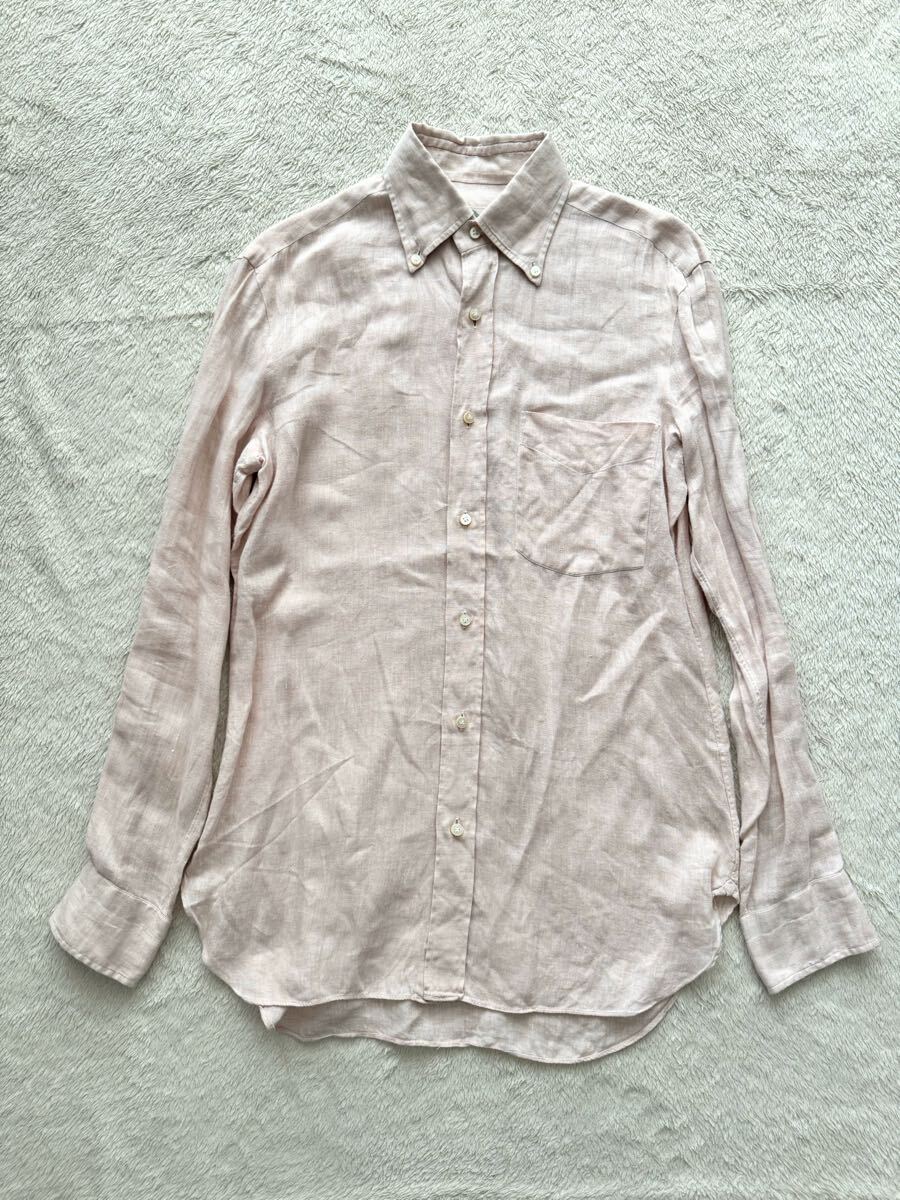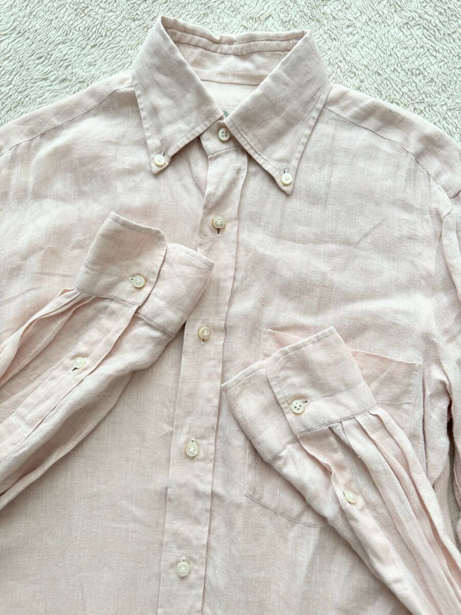 LUIGI BORRELI size37 イタリア製 リネンシャツ メンズ ピンクベージュ BDシャツ ボタンダウン ルイジボレリ ルイジボレッリ