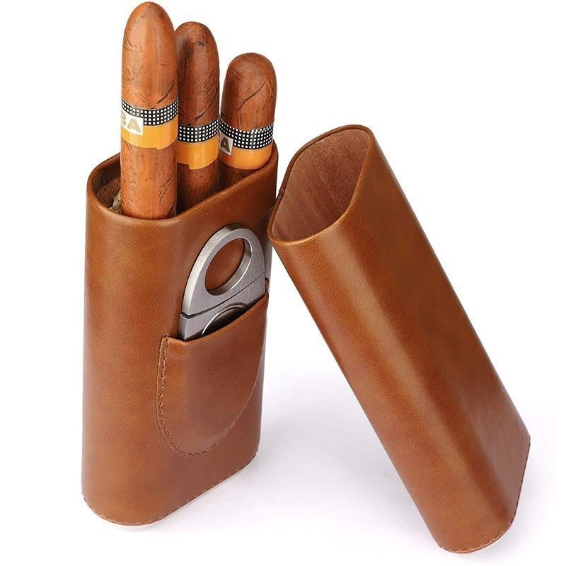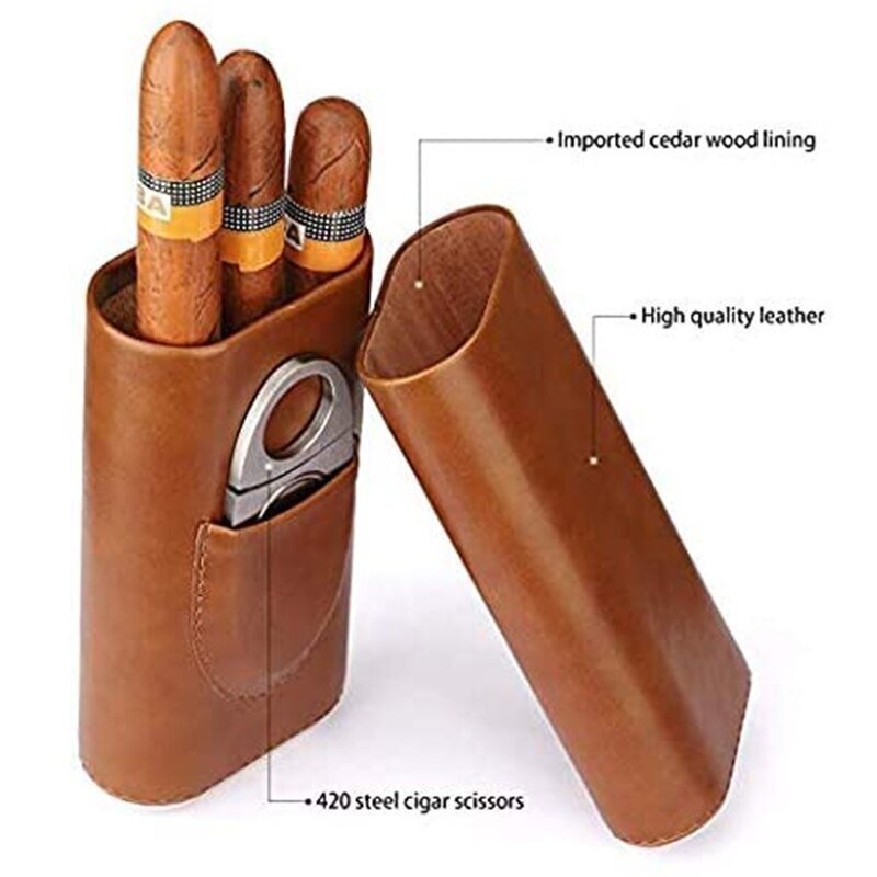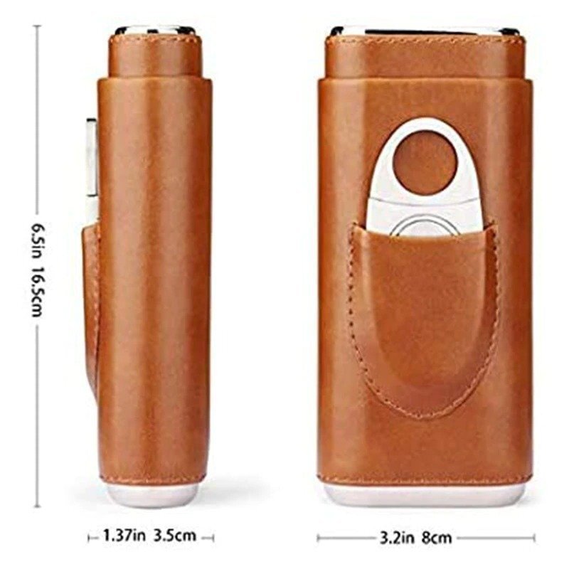 LRM5116★ヒュミドール ポータブル シガーボックス ブラウン シガーレザーケース シガーカッター付き