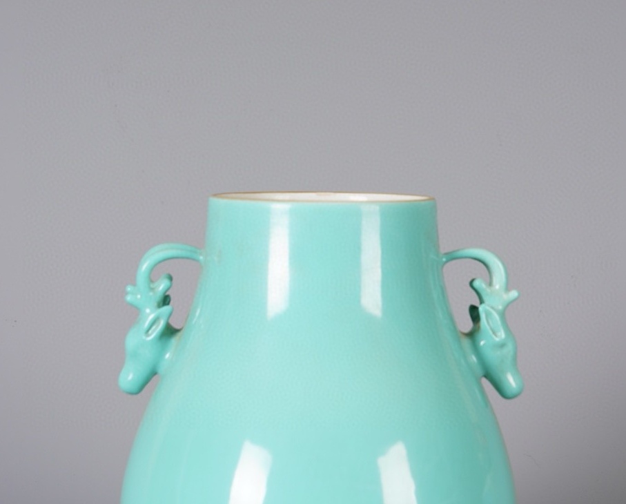 *珍品旧蔵* 清 雍正 松石綠釉鹿頭尊 中国古美術 極細工 骨董品 唐物 中国瓷器 中国古玩 ZK1219