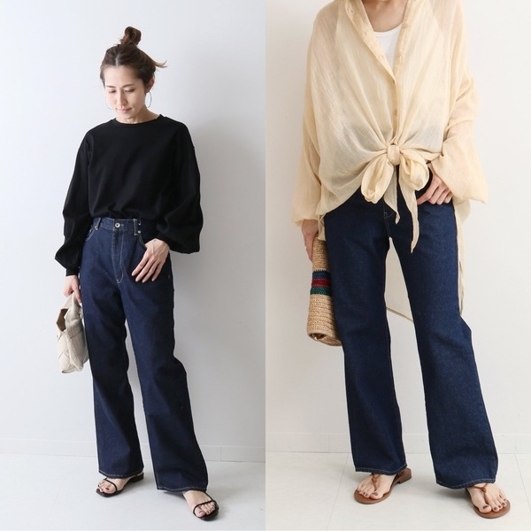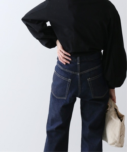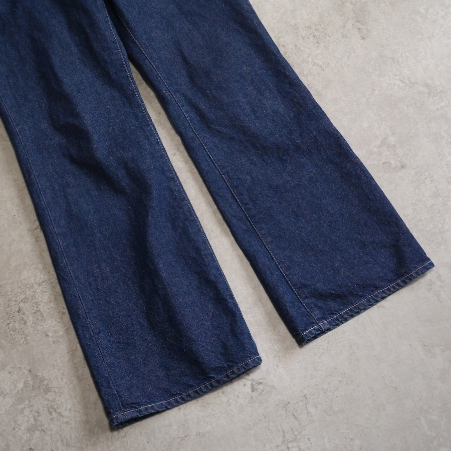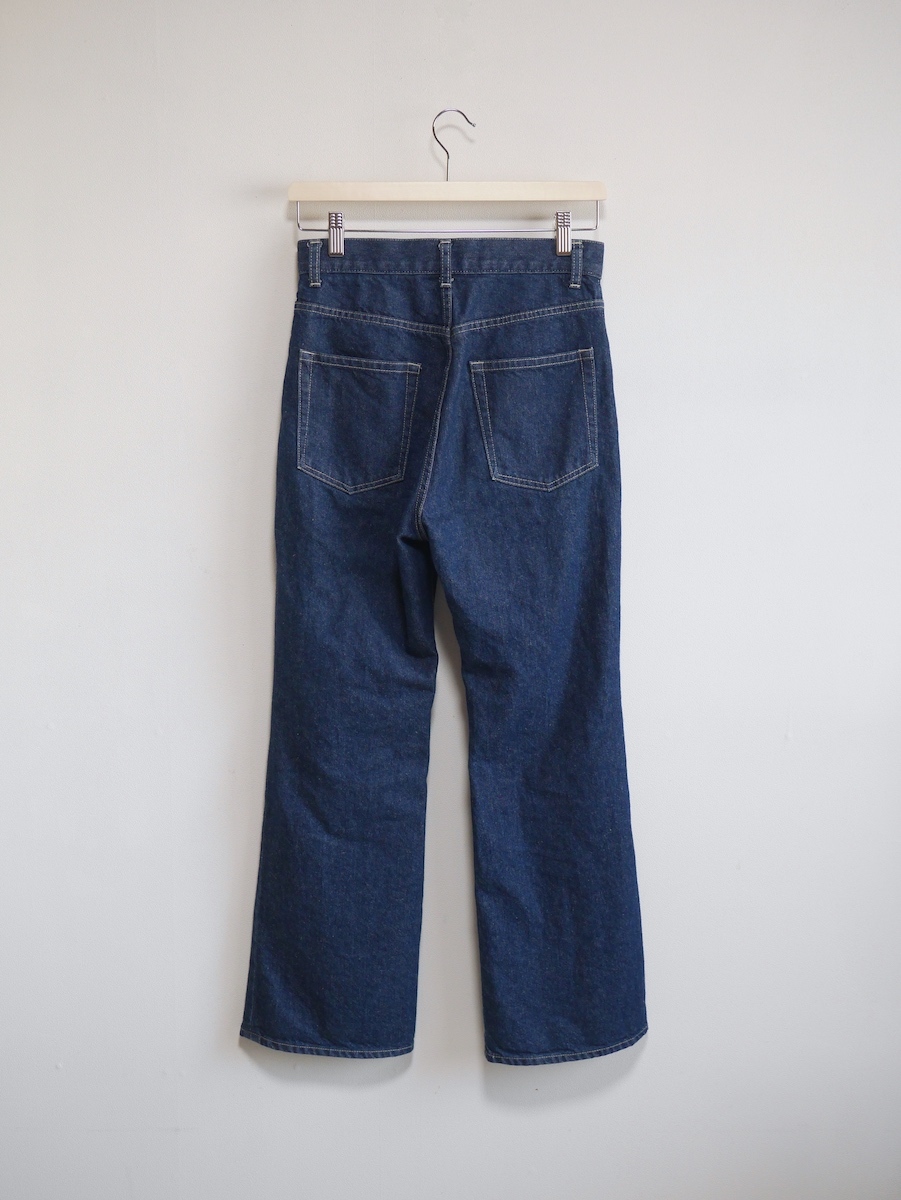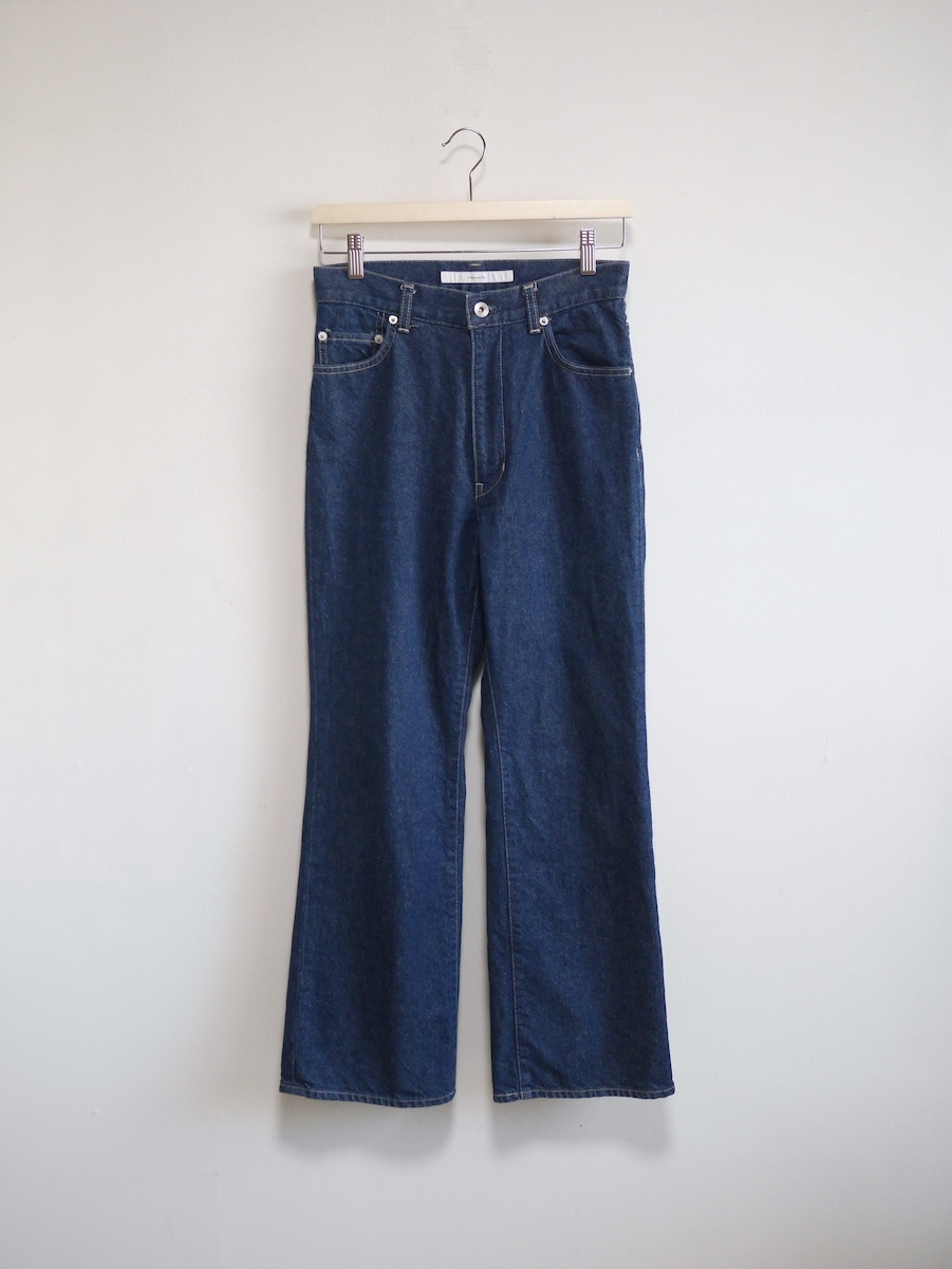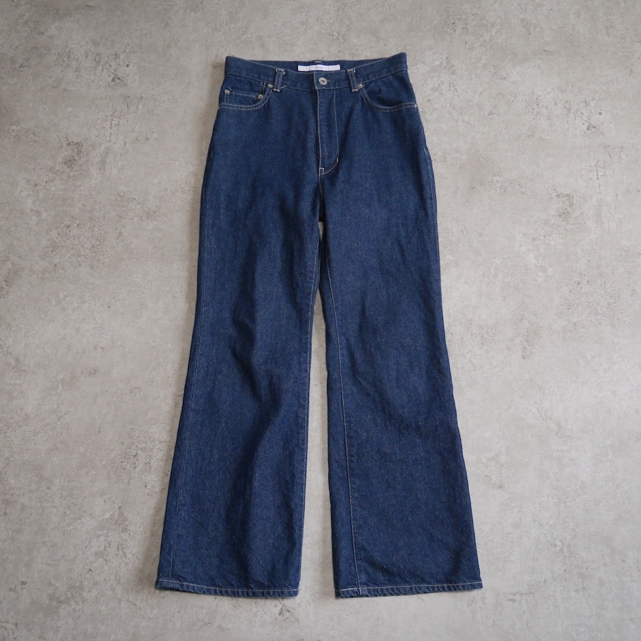 膝下から緩やかに広がるセミフレアシルエットのデニムパンツ。 ウエスト周りはタイト過ぎないサイズ感なので履き心地も良く、幅広いスタイリングにお使いいただけます。 定価17600円です。
