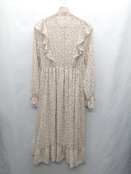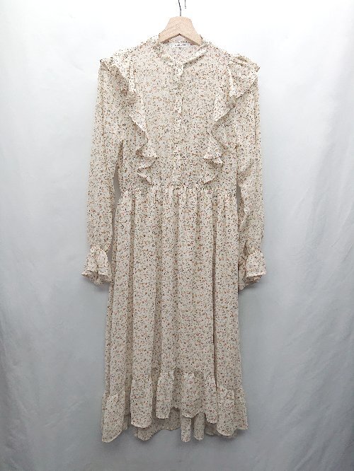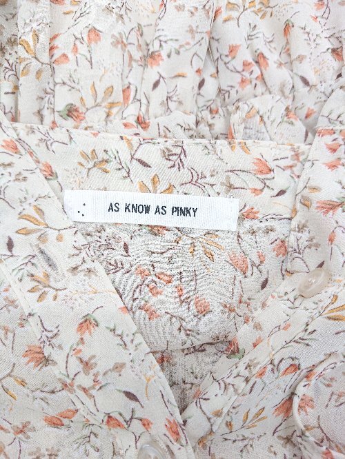 ◇ Θ AS KNOW AS PINKY 花柄 シフォンフリル 長袖 ロング ワンピース サイズ表記なし ベージュ オレンジ レディース E