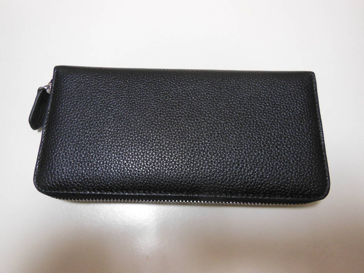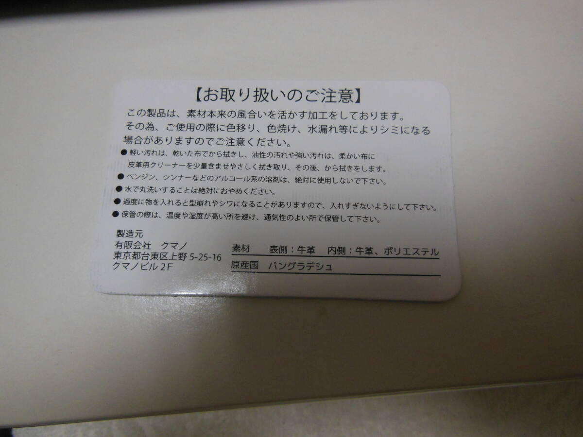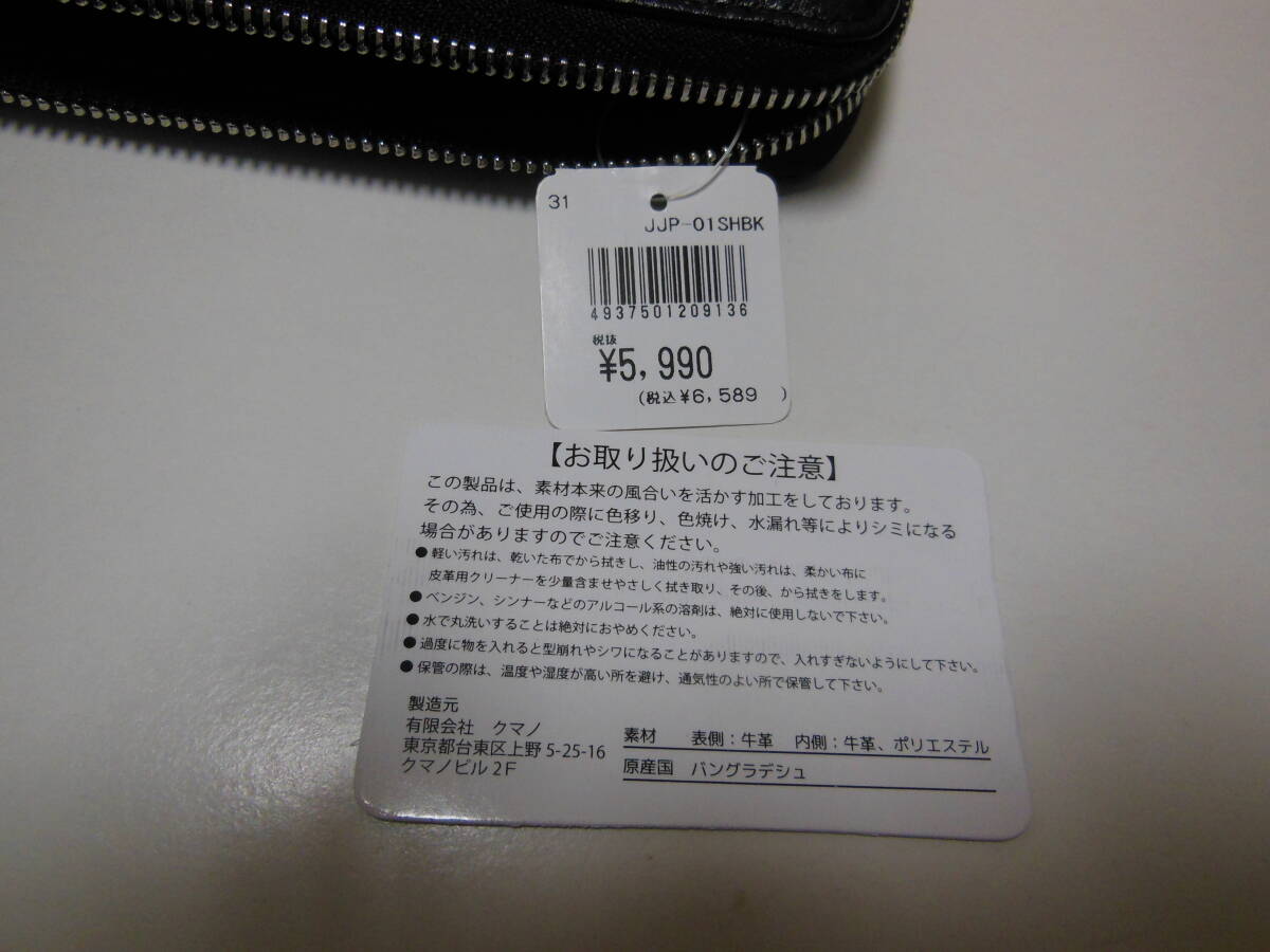 未使用品 クマノ ラウンドファスナー男性用長財布・小銭入れあり・ジャバラポケット付き 牛革 ブラック 説明書付き 送料無料