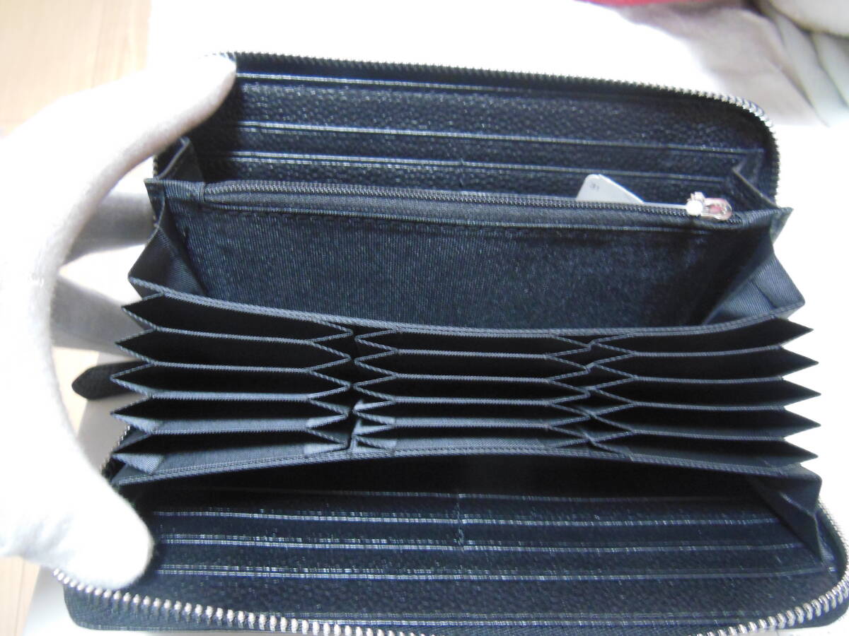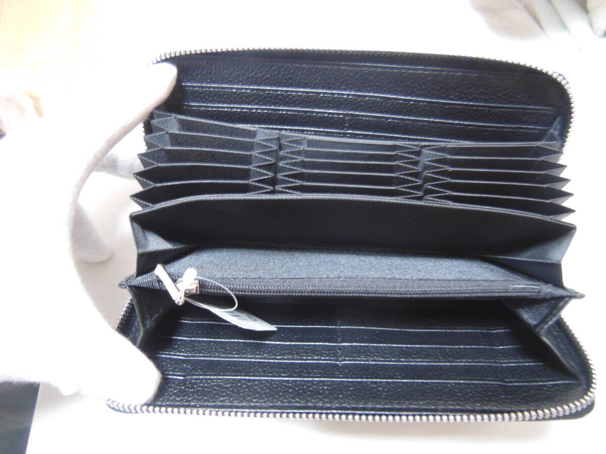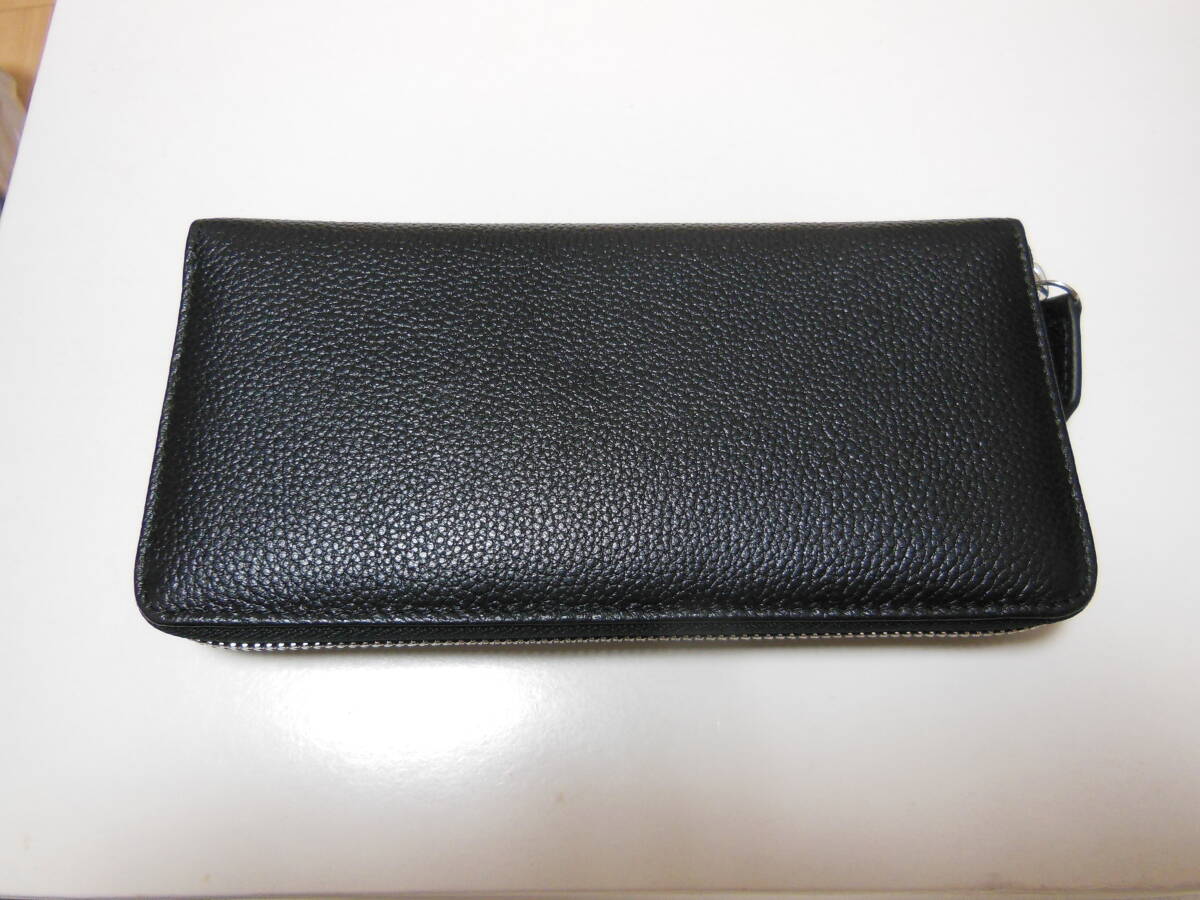 未使用品 クマノ ラウンドファスナー男性用長財布・小銭入れあり・ジャバラポケット付き 牛革 ブラック 説明書付き 送料無料