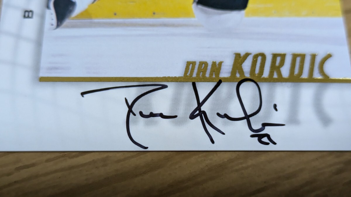 そのDan Kordic 直筆サインカード。カードはNHLカードで人気の1パックに1枚直筆サインカードが出現するBE