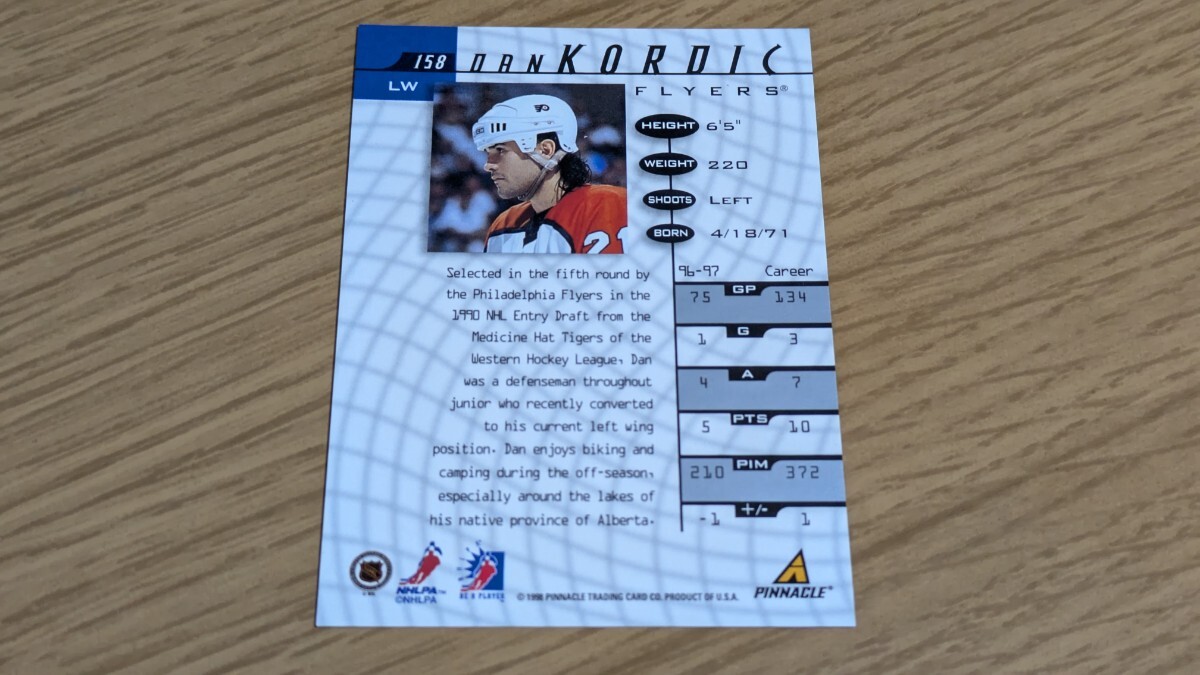 Dan Kordic 。カナダ出身。1971年4月18日生まれ。196センチ106キロ。アメリカ大スポーツのひとつNHL1990年ドラフト88位でフィラデルフィア・フライヤーズに指名され契約。NHLでは1991年〜1999年までの6シーズン活躍。通算197ゲーム出場。