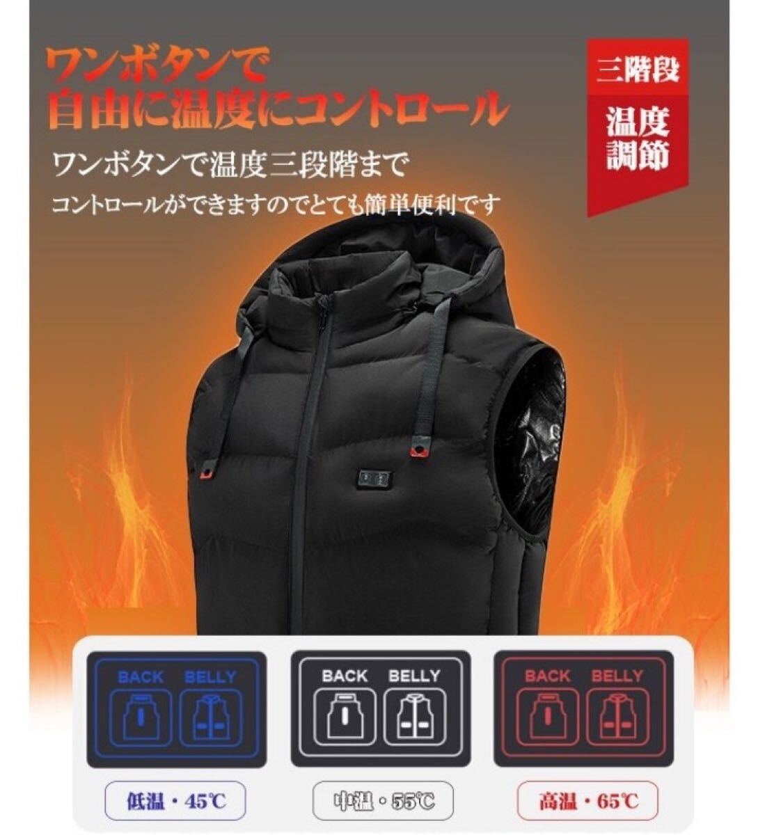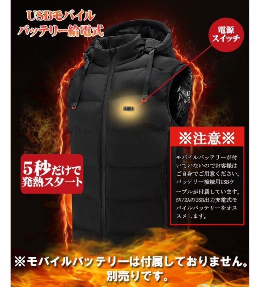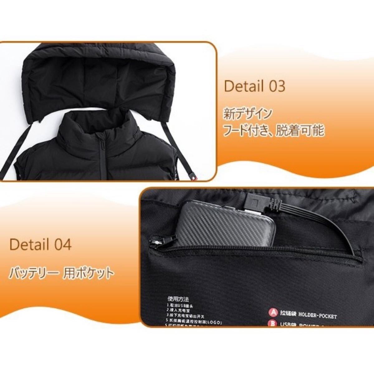 USB給電式 電熱ベスト フード付き 取り外し可能