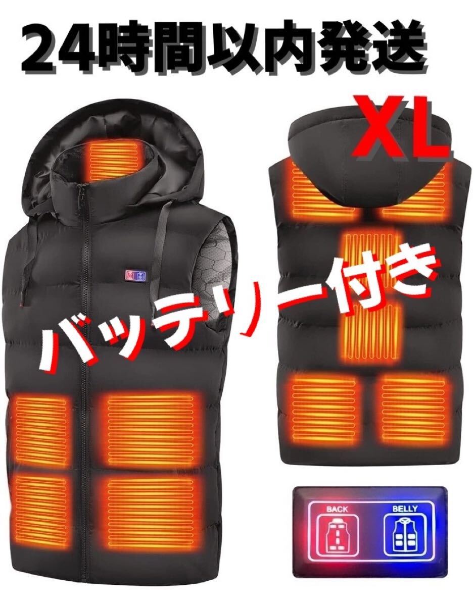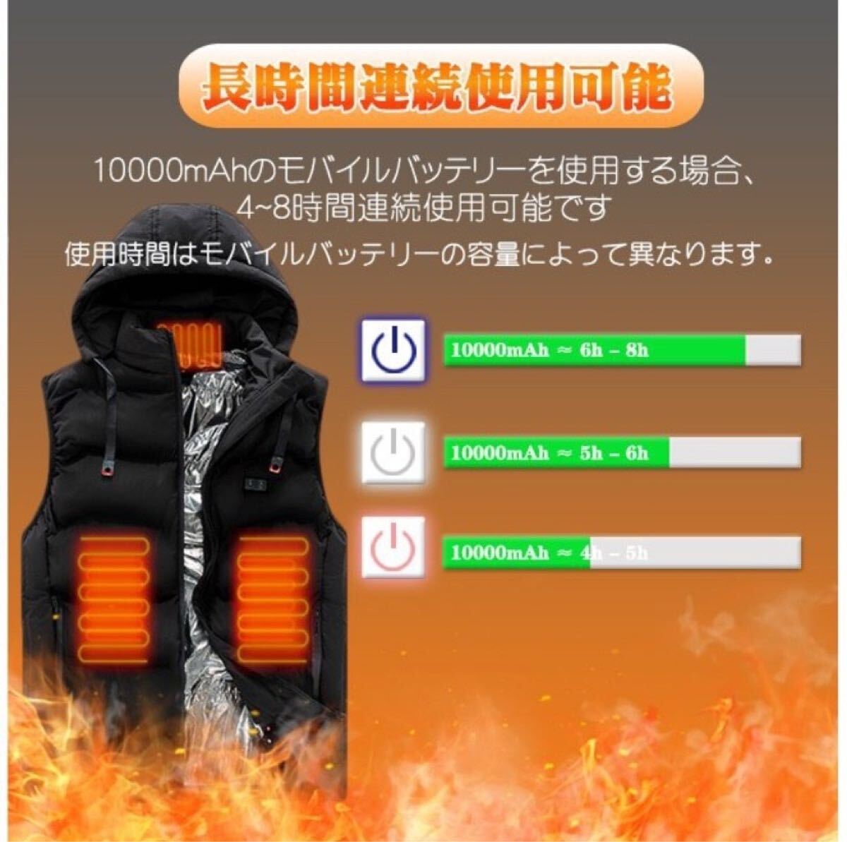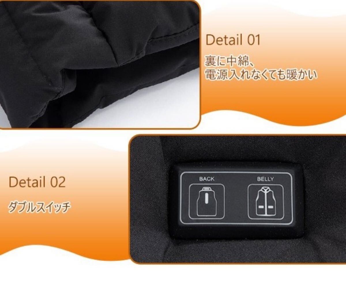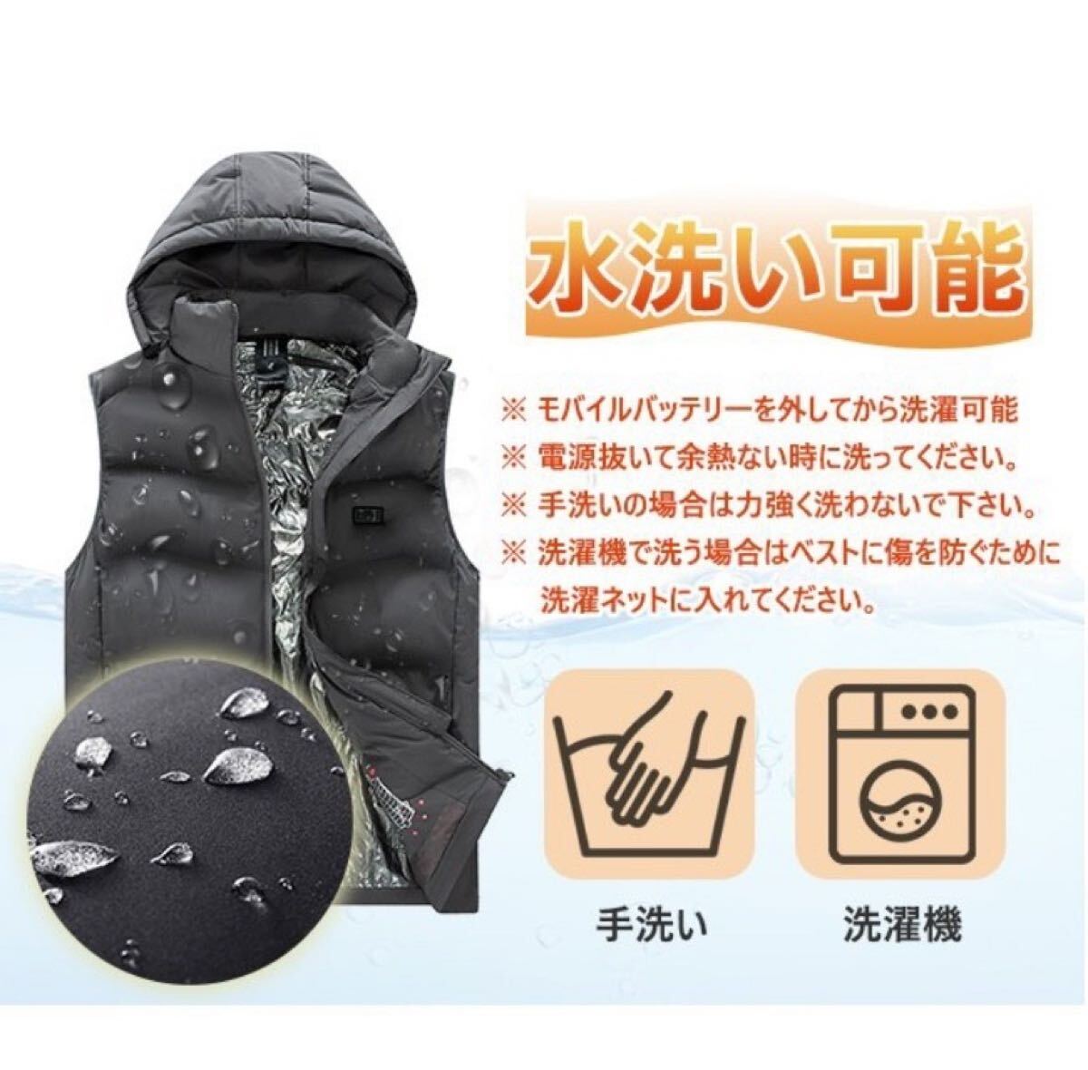 USB給電式 電熱ベスト フード付き 取り外し可能