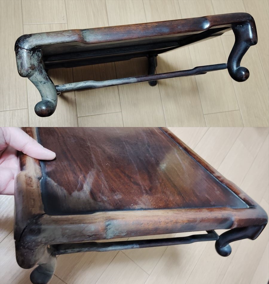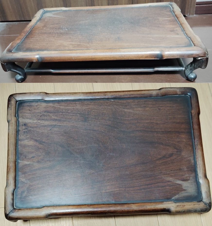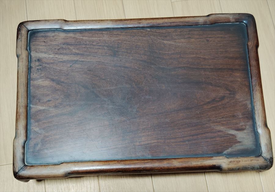 明〜清時代 黄花梨 卓 花台 重さ1.5kg 文房具 書道具 木製 古物保証 骨董品 古美術 時代物 紫檀 唐木