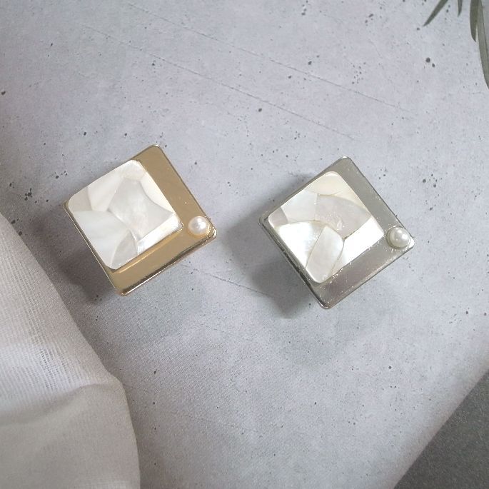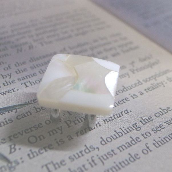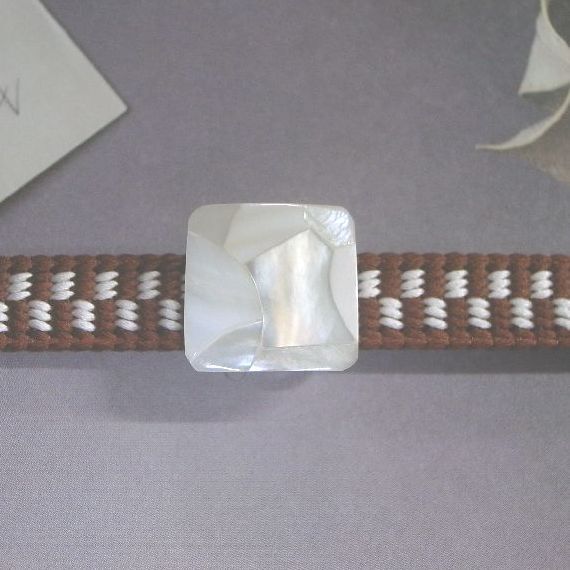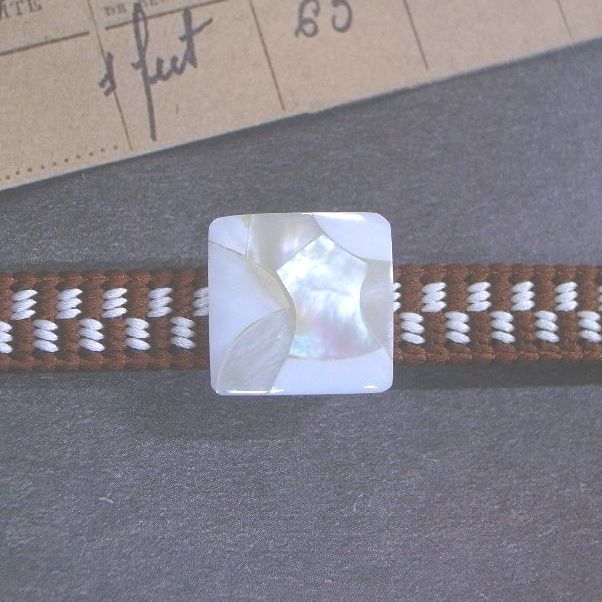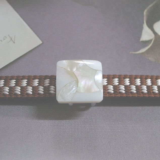 LEAF CLUB ♪ハンドメイド 帯留め 帯留 モザイクシェル シェル 貝 小さめ 可愛い 上品 シンプル 四角 ホワイト/白