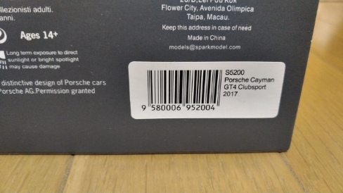 即決 spark Porsche ポルシェ ケイマン GT4 クラブスポーツ 2017 ホワイト 1/43 絶版 カラーサンプル レア