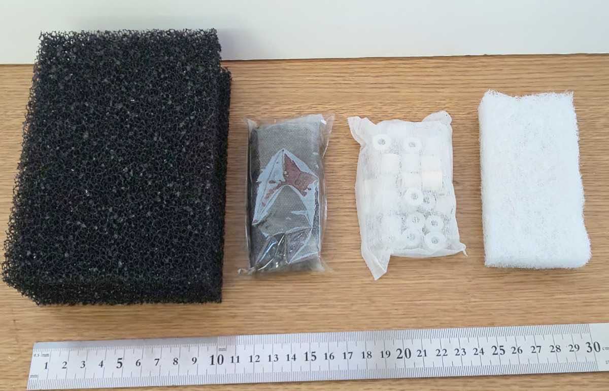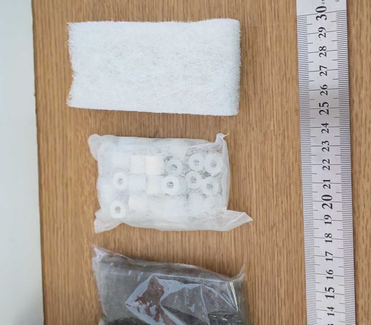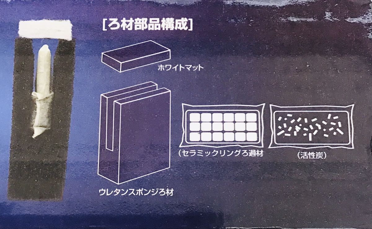 セラミックリングろ過材、活性炭のサンドイッチ方式です。