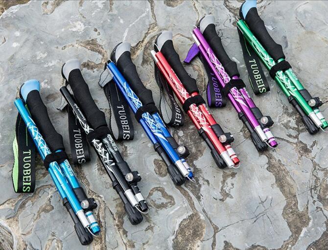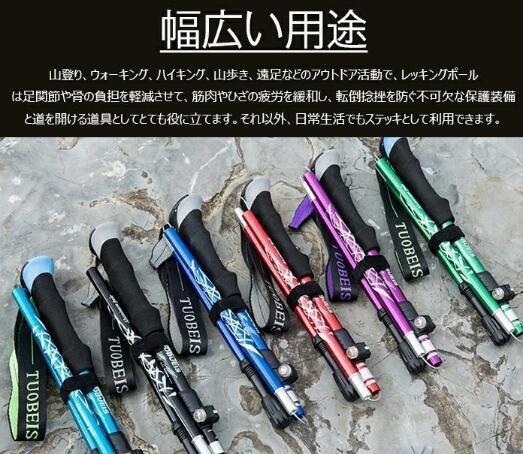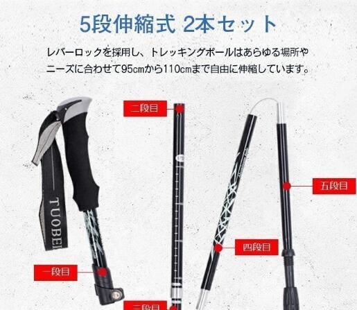 ングステッキ2本セット トレッキングポール 折りたたみ式 登山杖 五段式伸縮シャフト アルミ製 ウォーキングポール アウトドア 収納袋付属