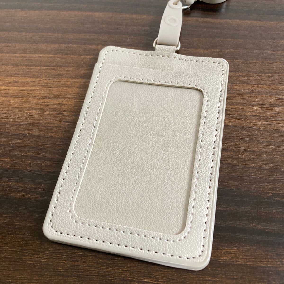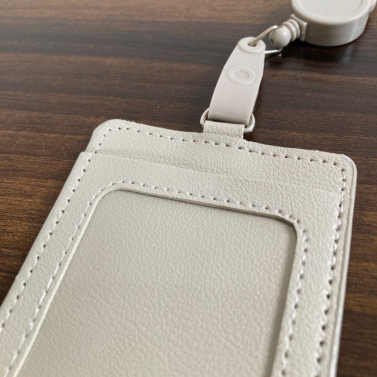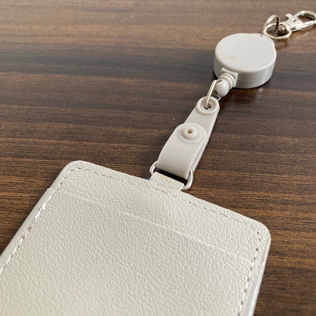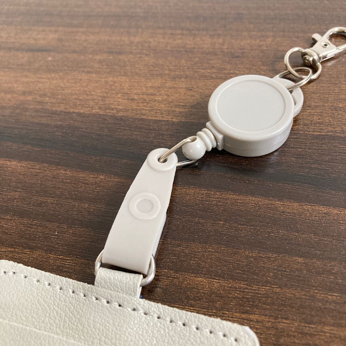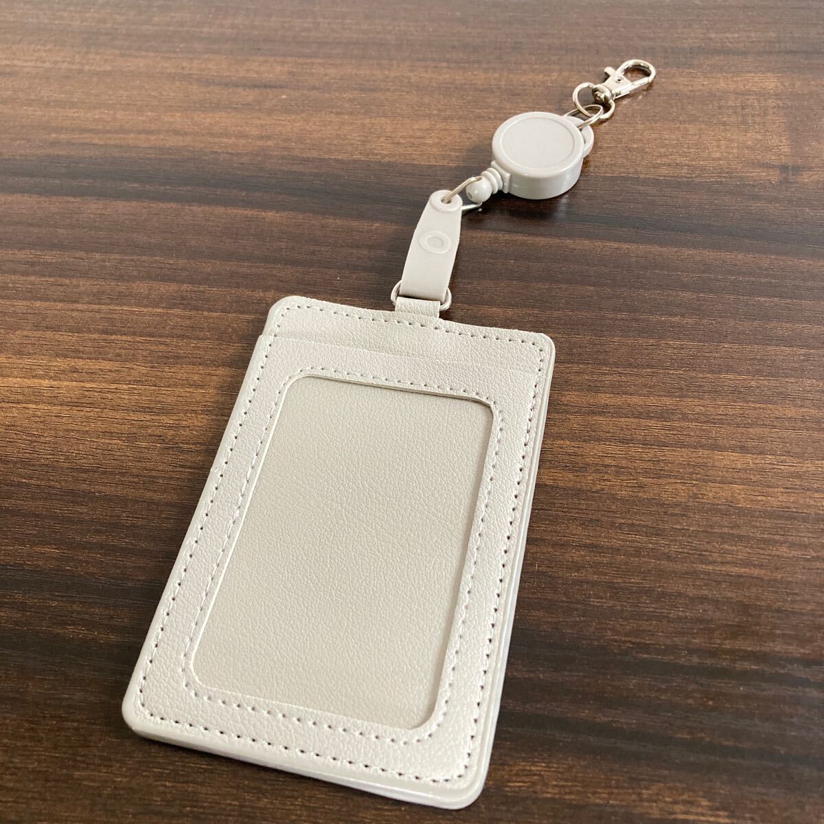 ライトグレー リール付きパスケース