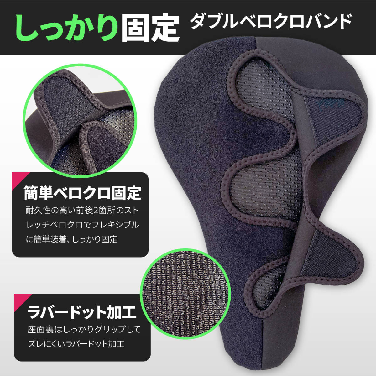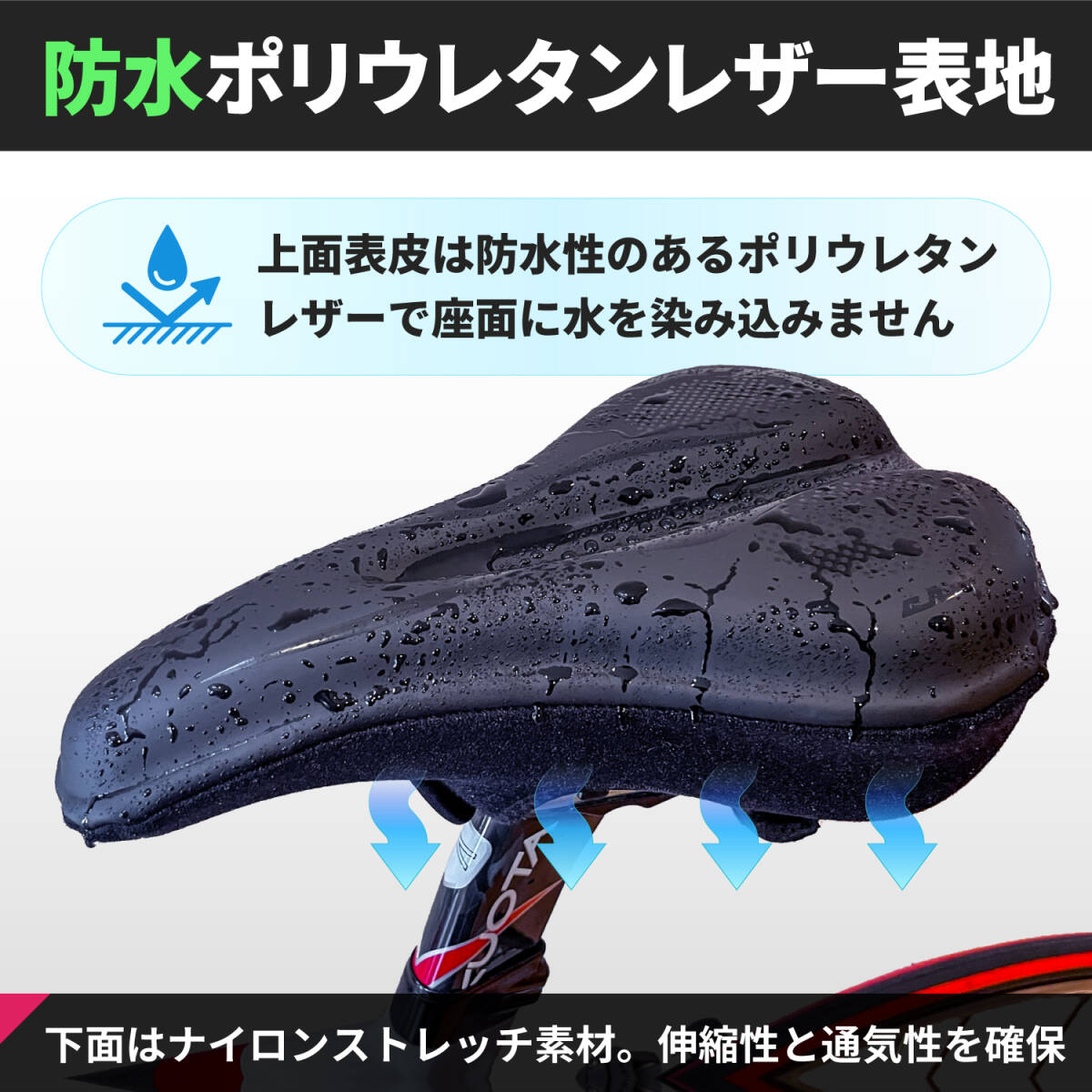 ■表面は防水PUレザー、前後2箇所のベロクロ固定でぐらつきません。