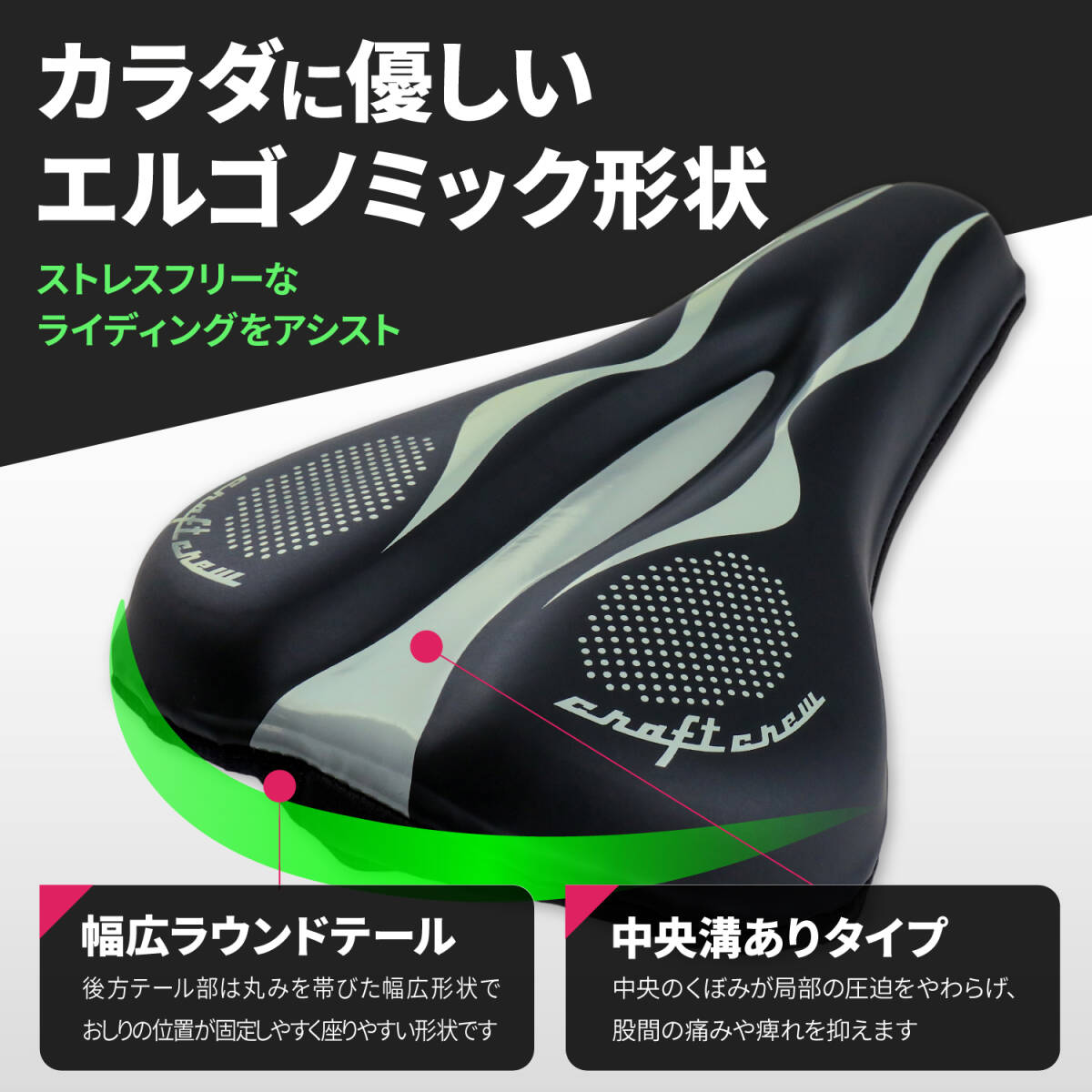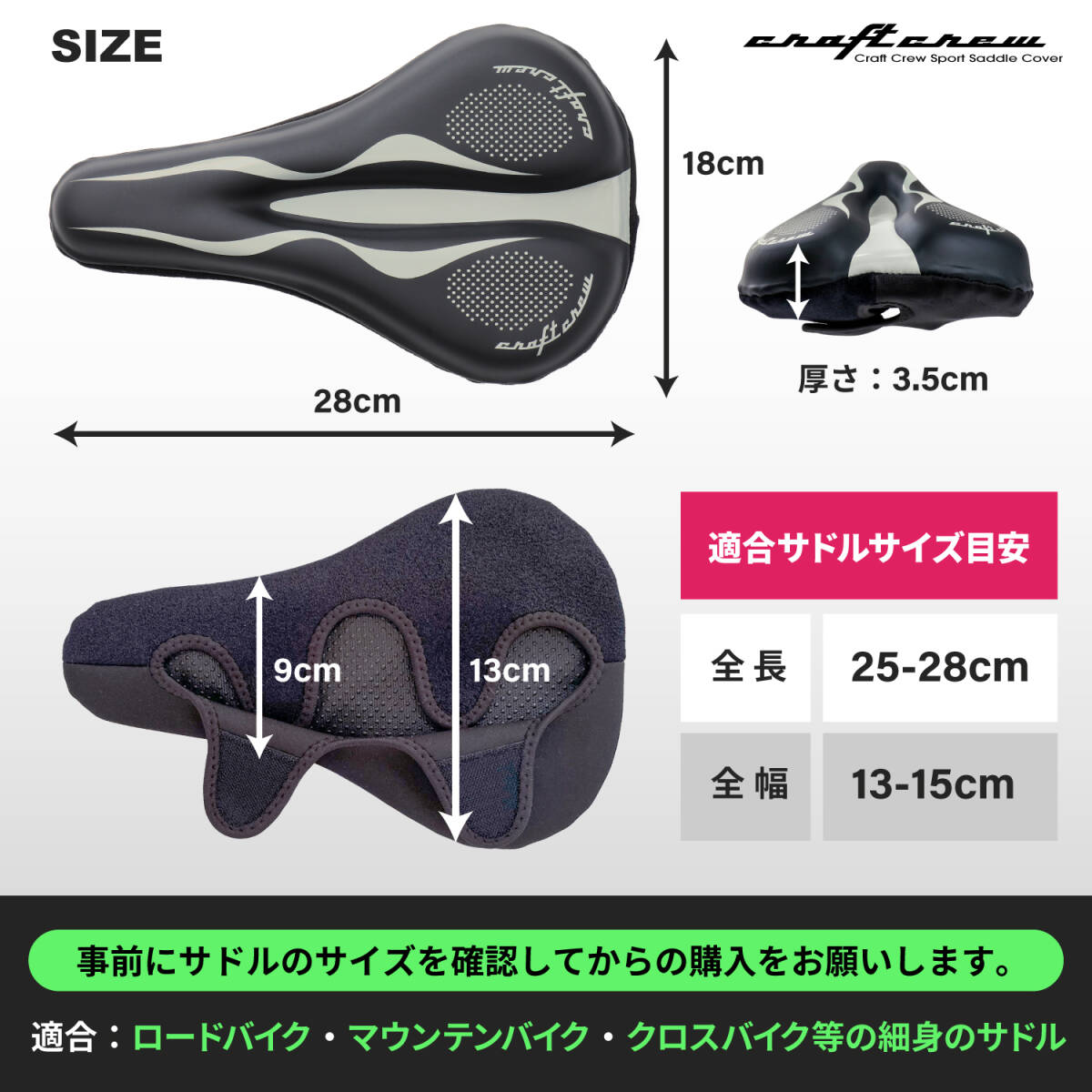 ●幅13-15cm、長さ25-28cmのサドルに適合