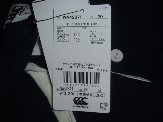 | CANTERBURY(カンタベリー)の レディース ラガー スウェット フーディ パーカー WA42871 新品です。税込み定価:13,200円 レディースのMサイズ 前身丈60 後身丈65 身幅61肩幅52 袖丈53 裾幅61 袖口幅9 素材 身生地:コットン70% ポリエステル30% リブ部分:コットン95% ポリウレタン5% オーガニックコットンを使用した裏起毛のラガースウェットフーディーです。 肉厚でしっかりとした風合いが特徴で、コットン100%の製品に比べて速乾性に優れ、UPF50+、95%以上の紫外線カット率を兼ね備えています。 フロントの前開きはラグビージャージに使われる仕様で仕立てました。補強ステッチやラバー釦使い、裾スリットのトリプルバータックなど、カンタベリーのアイデンティティが詰まったアイテムです。 | |||