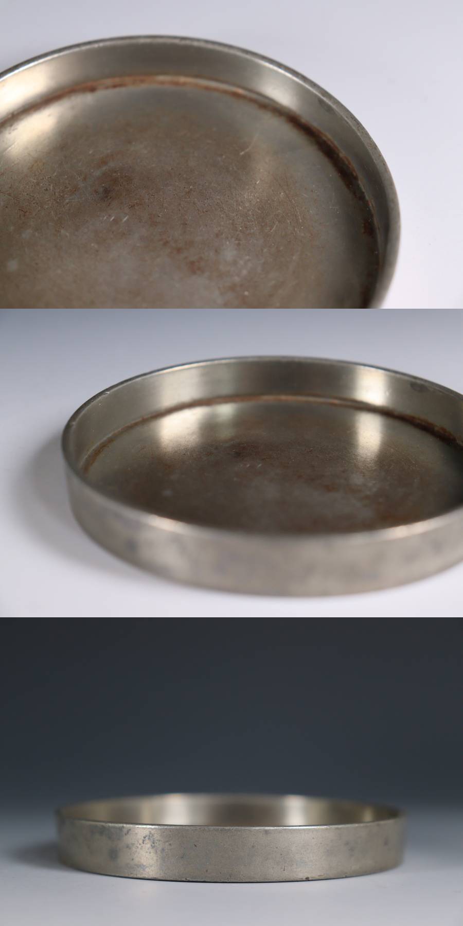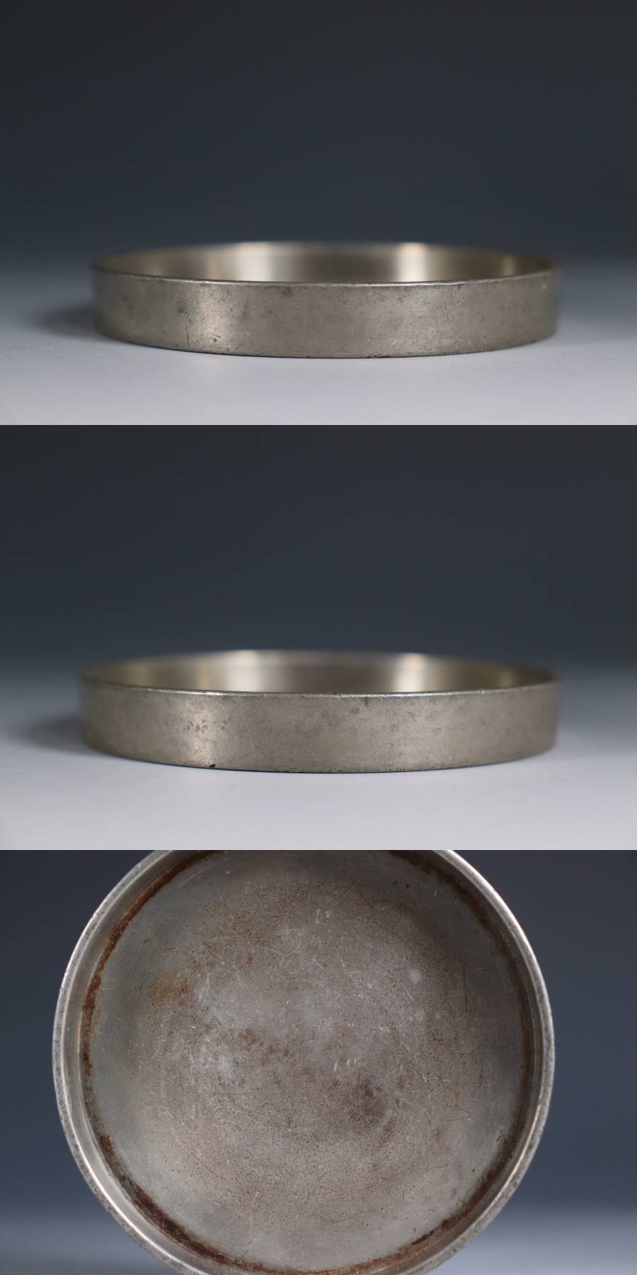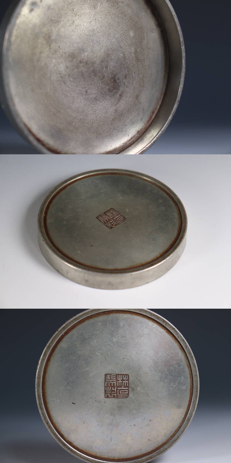 | 商品説明 | 商品名:蔵出し品 古錫 在印 急須盆 付属品:なし。 サイズ:高さ1,1cm、口径9cm、高台8,8cm、重さ113g。 状態:スレがございます。 |