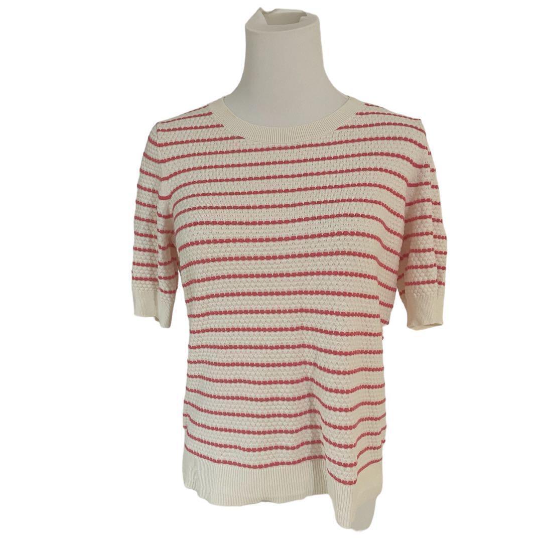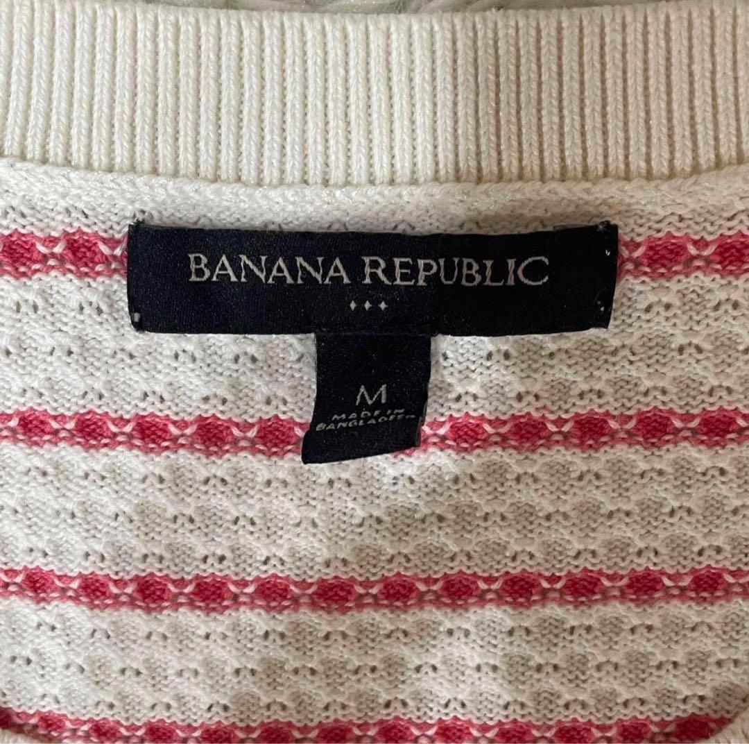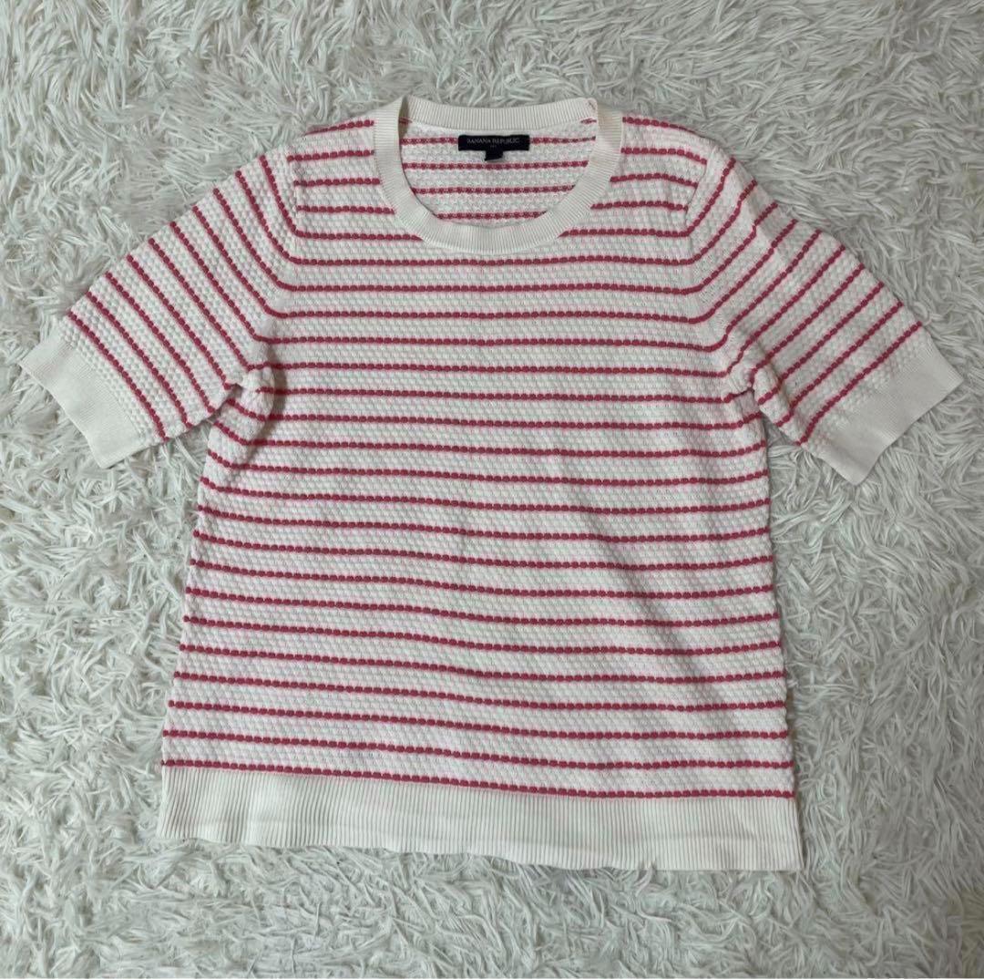 BANANA REPUBLIC バナナリパブリック【M】レディース 半袖 サマーニット ボーダー柄 赤×白 綿60% レーヨン40% 送料無料