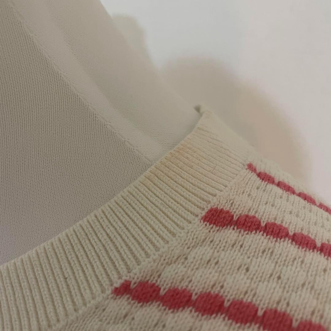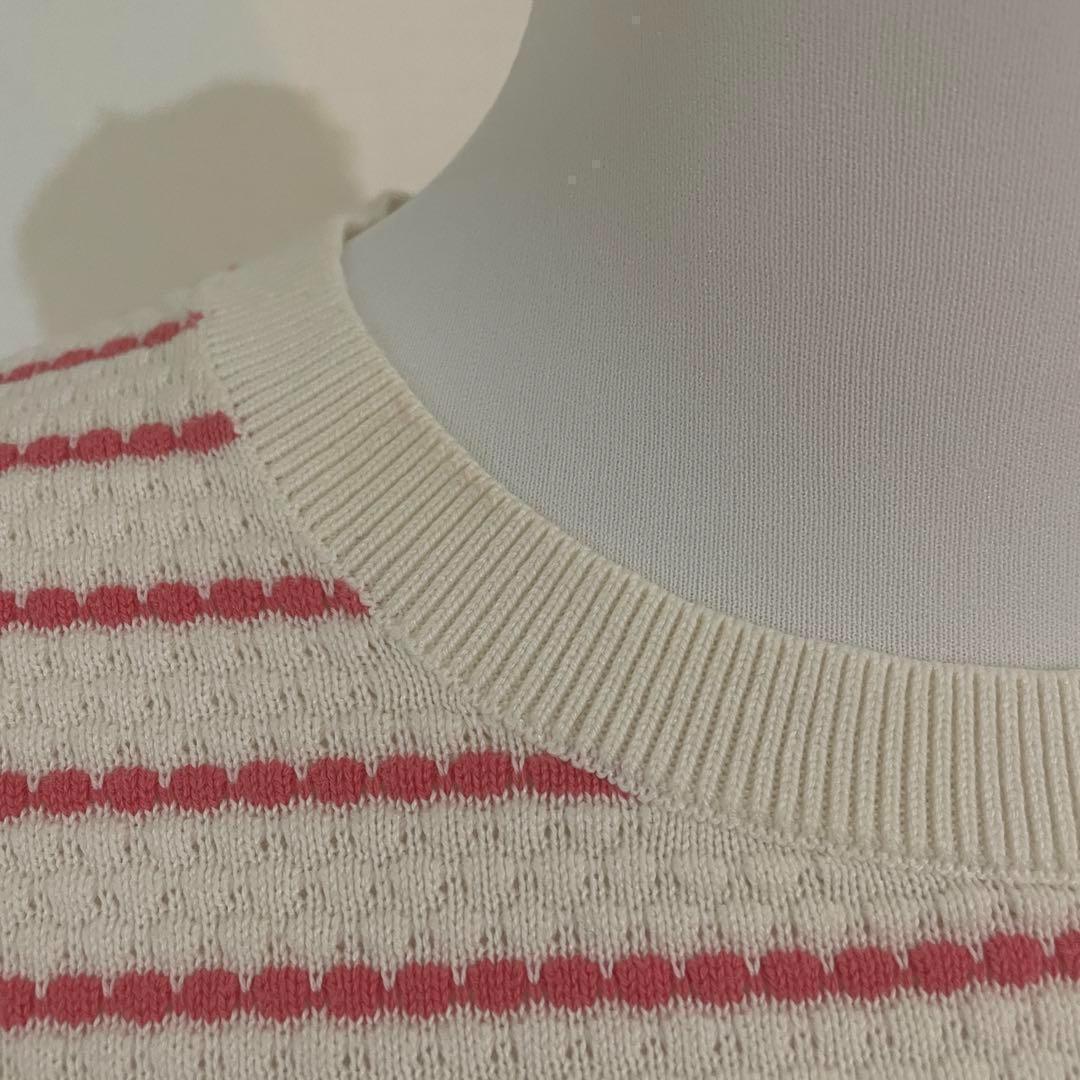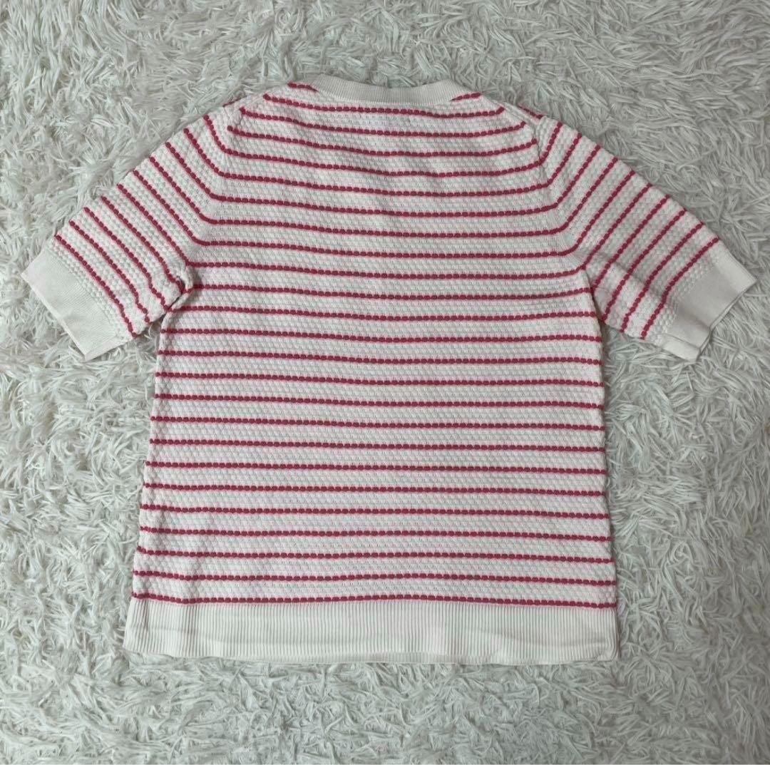 BANANA REPUBLIC バナナリパブリック【M】レディース 半袖 サマーニット ボーダー柄 赤×白 綿60% レーヨン40% 送料無料