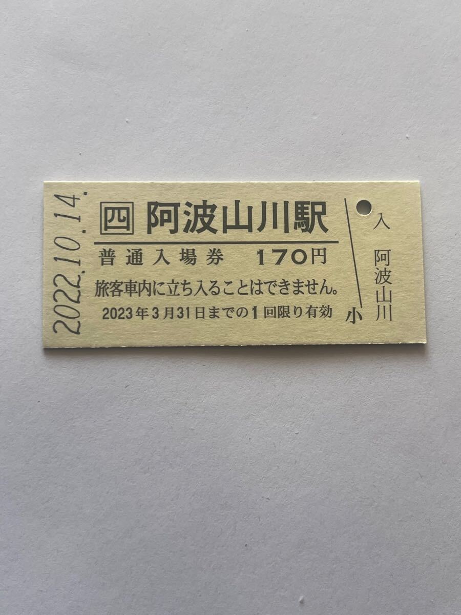 JR四国徳島線阿波山川駅のB型硬券入場券です。(2022年)