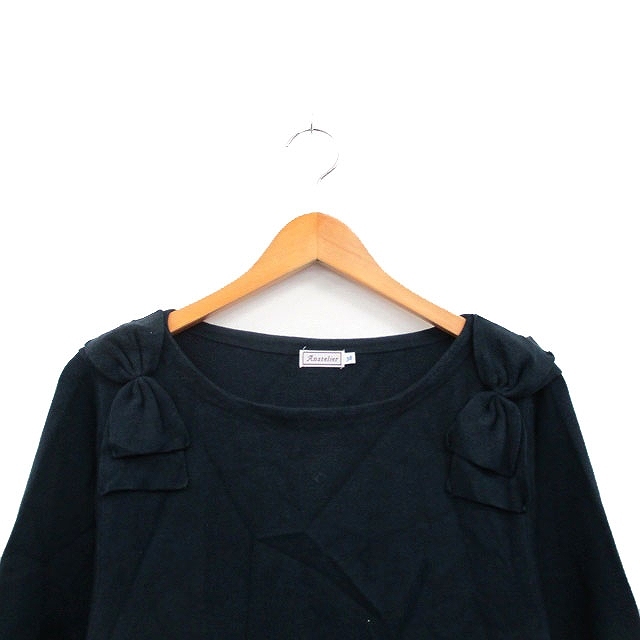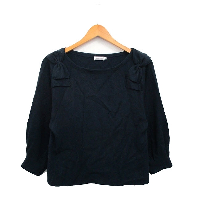 アナトリエ ANATELIER ニット セーター 七分袖 リボン シンプル 38 ネイビー 紺 /KT23 レディース