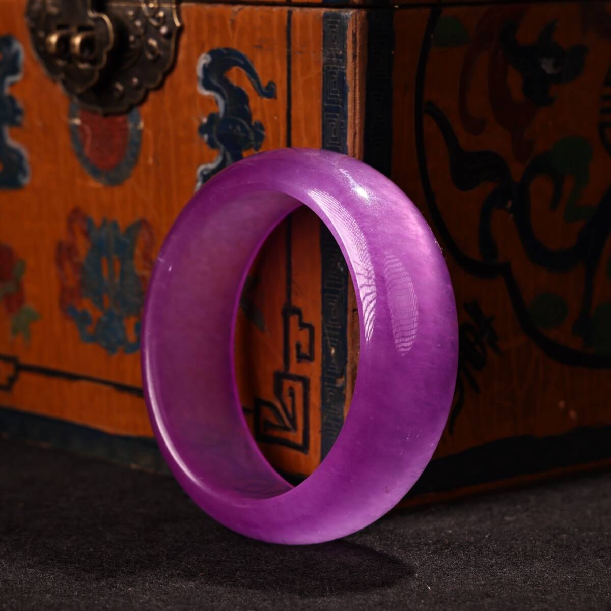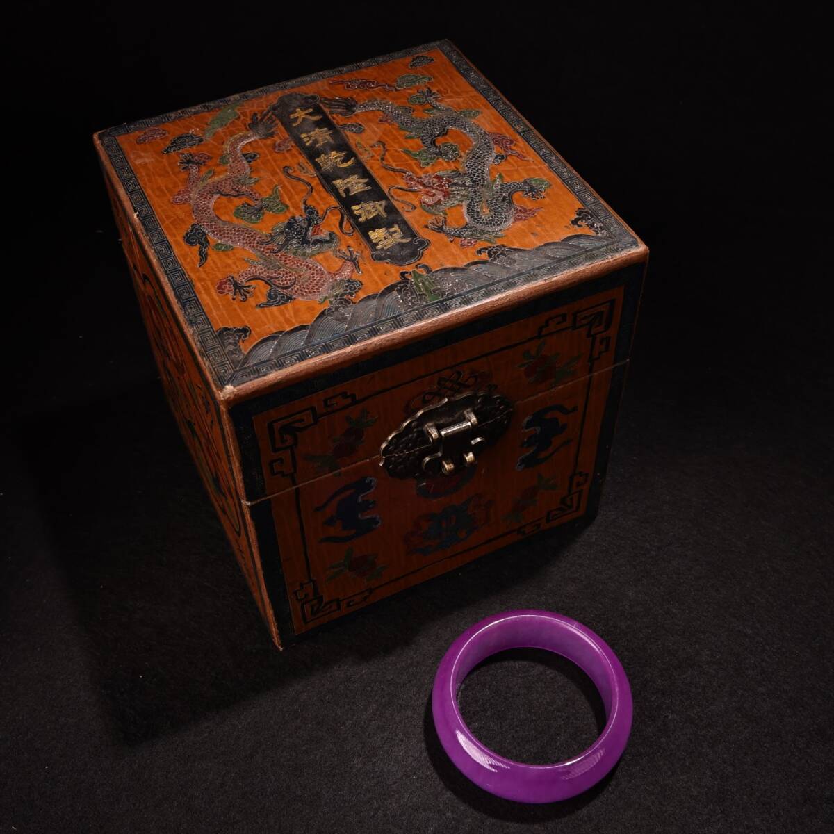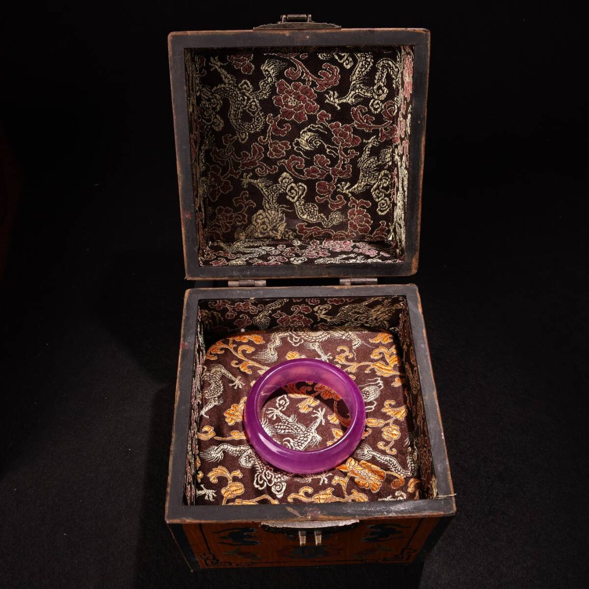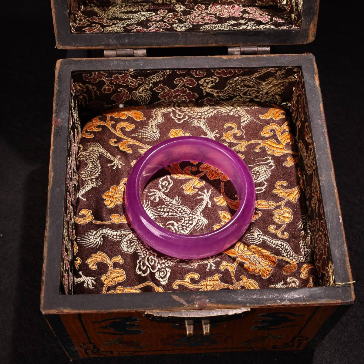 『清・宮廷御製・古高冰紫羅蘭翡翠・腕輪・漆器盒・箱付』極細工・東洋彫刻・骨董品・古賞物・中国古玩・中国古美術