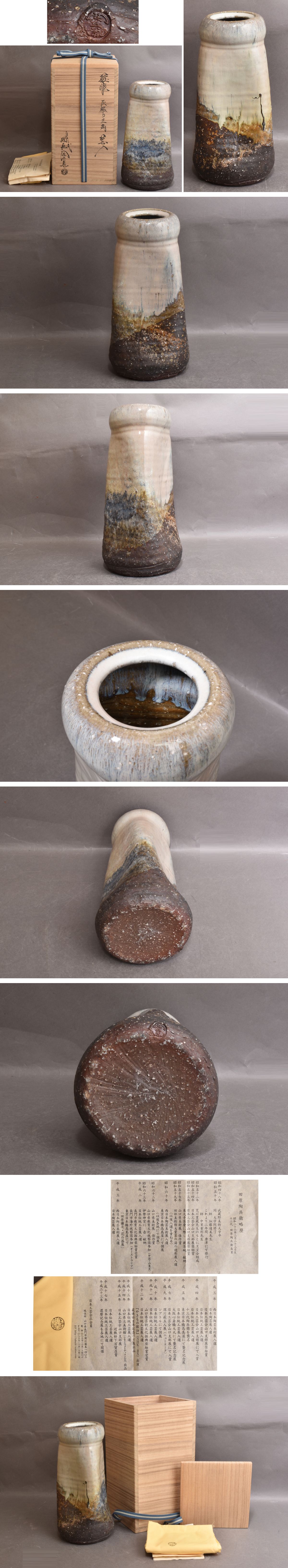景色の良い味わい深い花入れです。濃紺の景色もあり素晴らしい作品です。