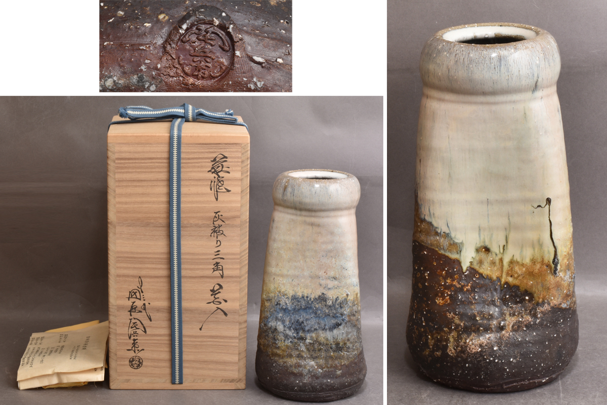 5383 十三代 田原陶兵衛 萩焼 灰被り三角花入 無キズ 共箱 傑作品 そごうデパ-ト販売商品