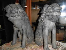 「尾張野骨董蔵出し」NO 2090-56 陶器狛犬 1対 瓦風材質