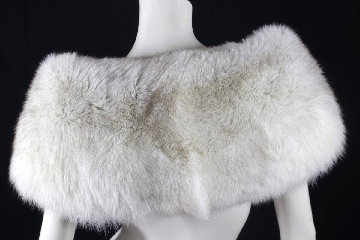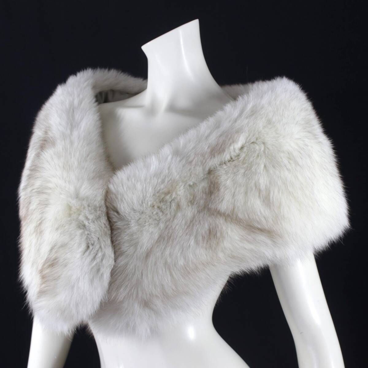 大切な成人式や,卒業式,パーティーなどの装いに,美しいホワイト系の毛皮製マフラーで、女性らしい上品さを演出します。振袖,卒業式の袴,結婚式の着物などにもお使いいただけます。