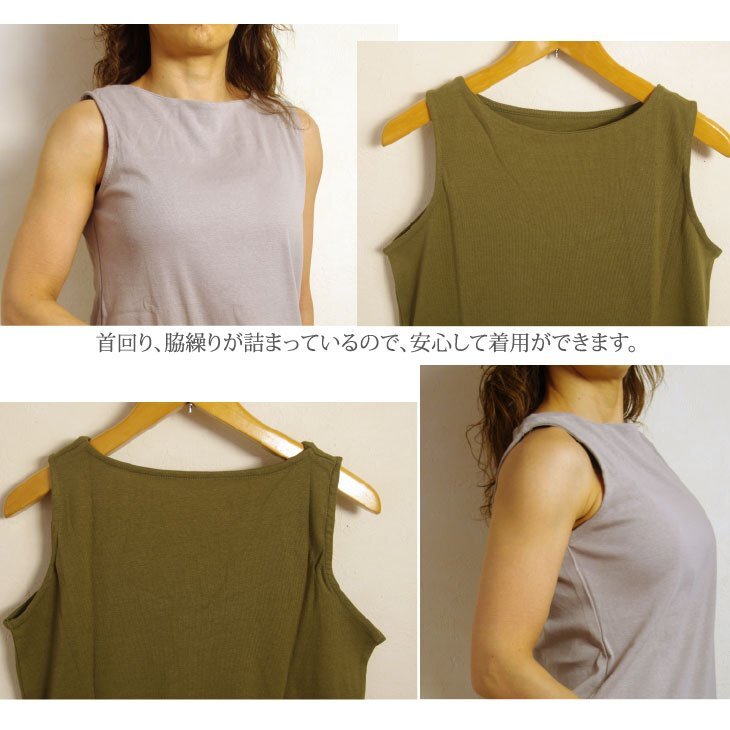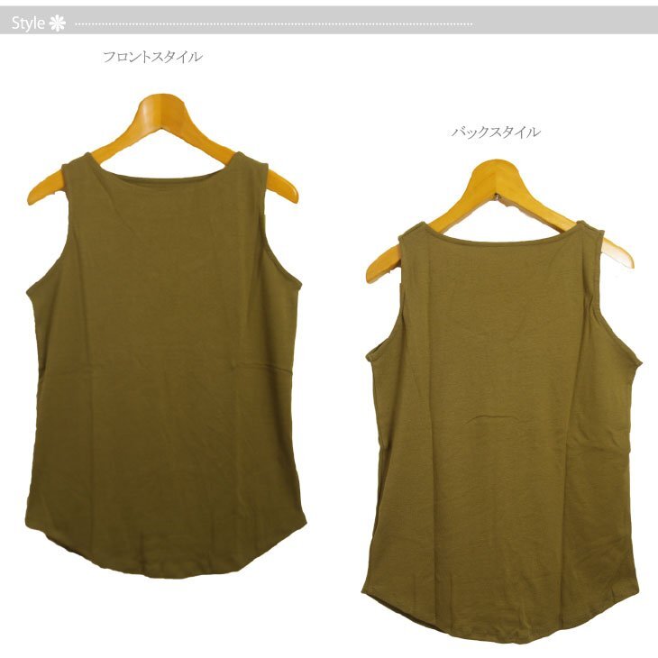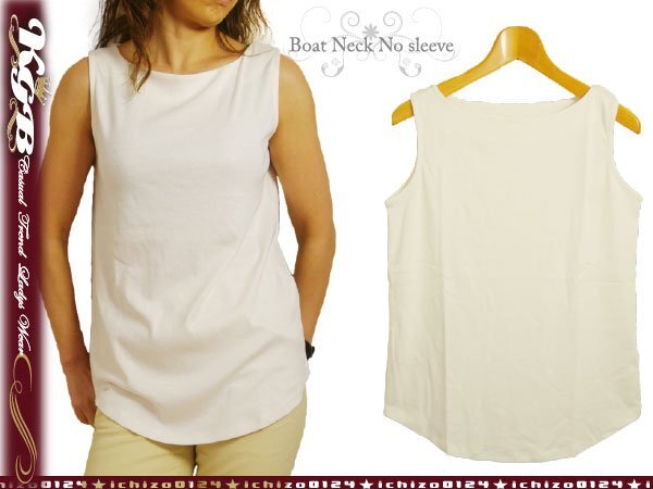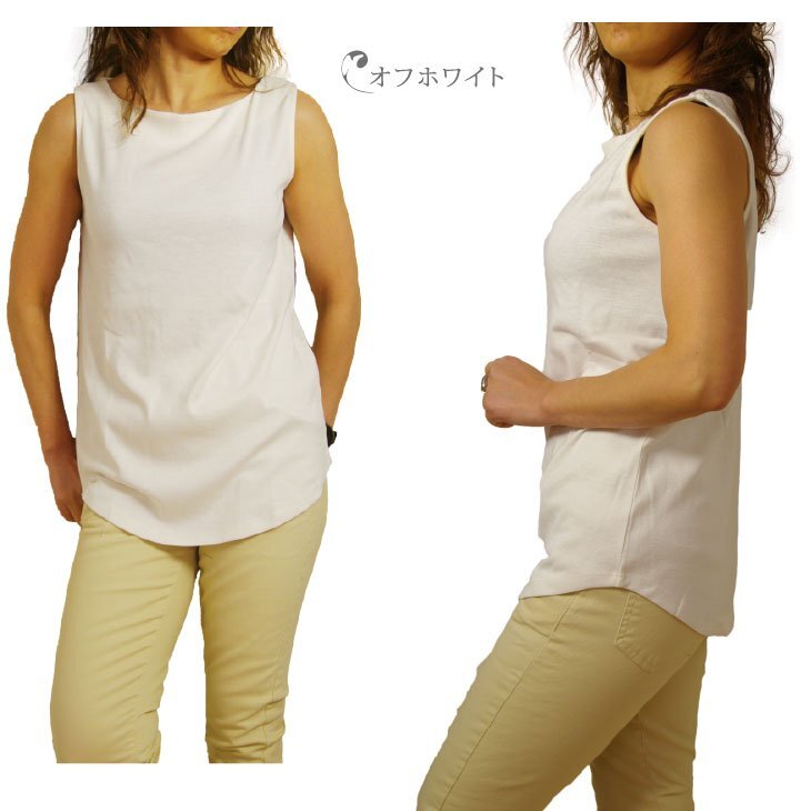 L オフホワイト ボートネック ノースリーブ タンクトップ 綿 レディース 無地 新品