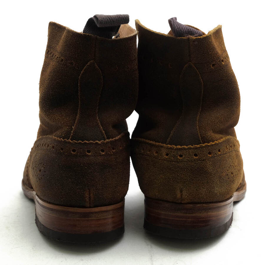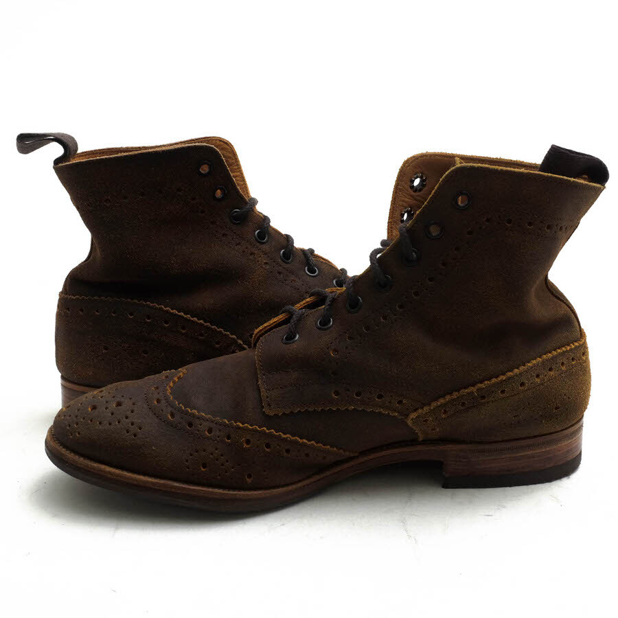 | ◆ブランド名 Tricker's ◆サイズ表記 UK8.5 ◆日本サイズ参考 約27.0-27.5cm ◆サイズ詳細 アウトソール靴底全長 約29.5cm、アウトソール靴底幅 約10.5cm、ヒール高さ約2.7cm、ブーツ高さ 約17.3cm ◆特徴 ダブルソール カントリーブーツ ウイングチップ 定番 グッドイヤーウェルト製法 ◆型番 M6178 Brogue Boots ◆生産国 イギリス ◆素材 上質な革 スエードレザー ◆素材詳細 オイルドスエード(牛革) ◆色 ダークブラウン 焦げ茶 ◆商品状態 中古品-良い ◆状態詳細 ハーフソール、ヒール修理済み ◆備考 Paul Smith ポールスミス別注モデル |