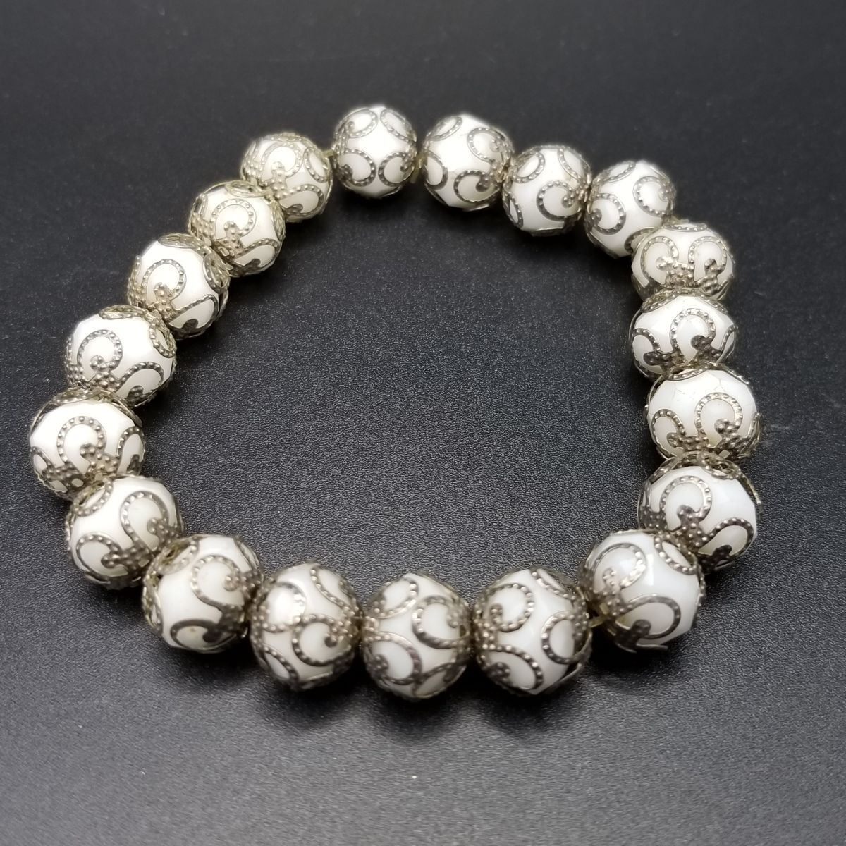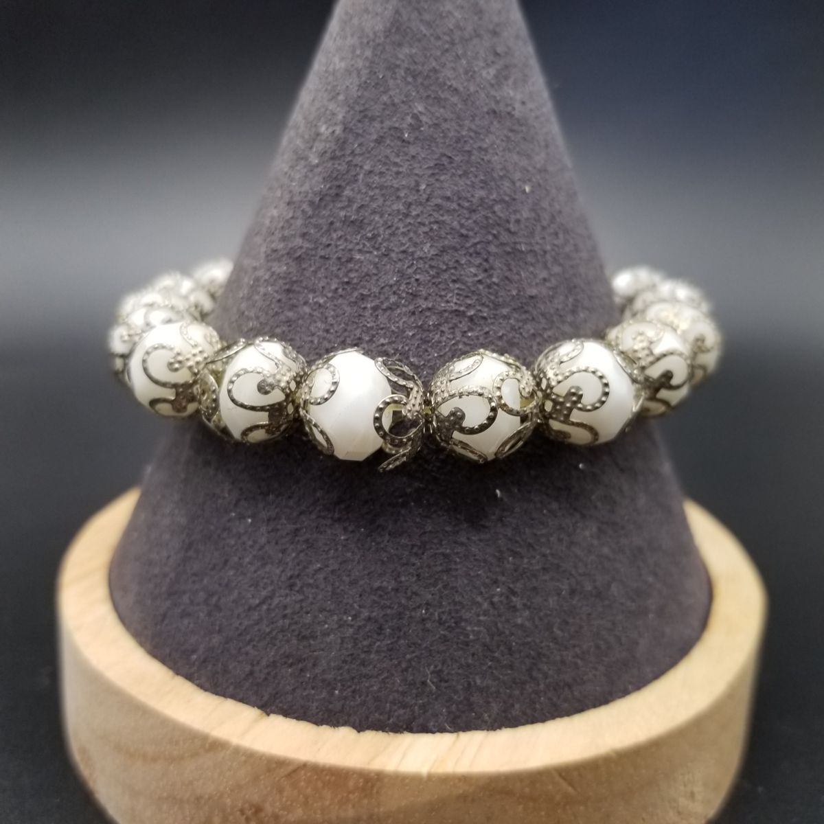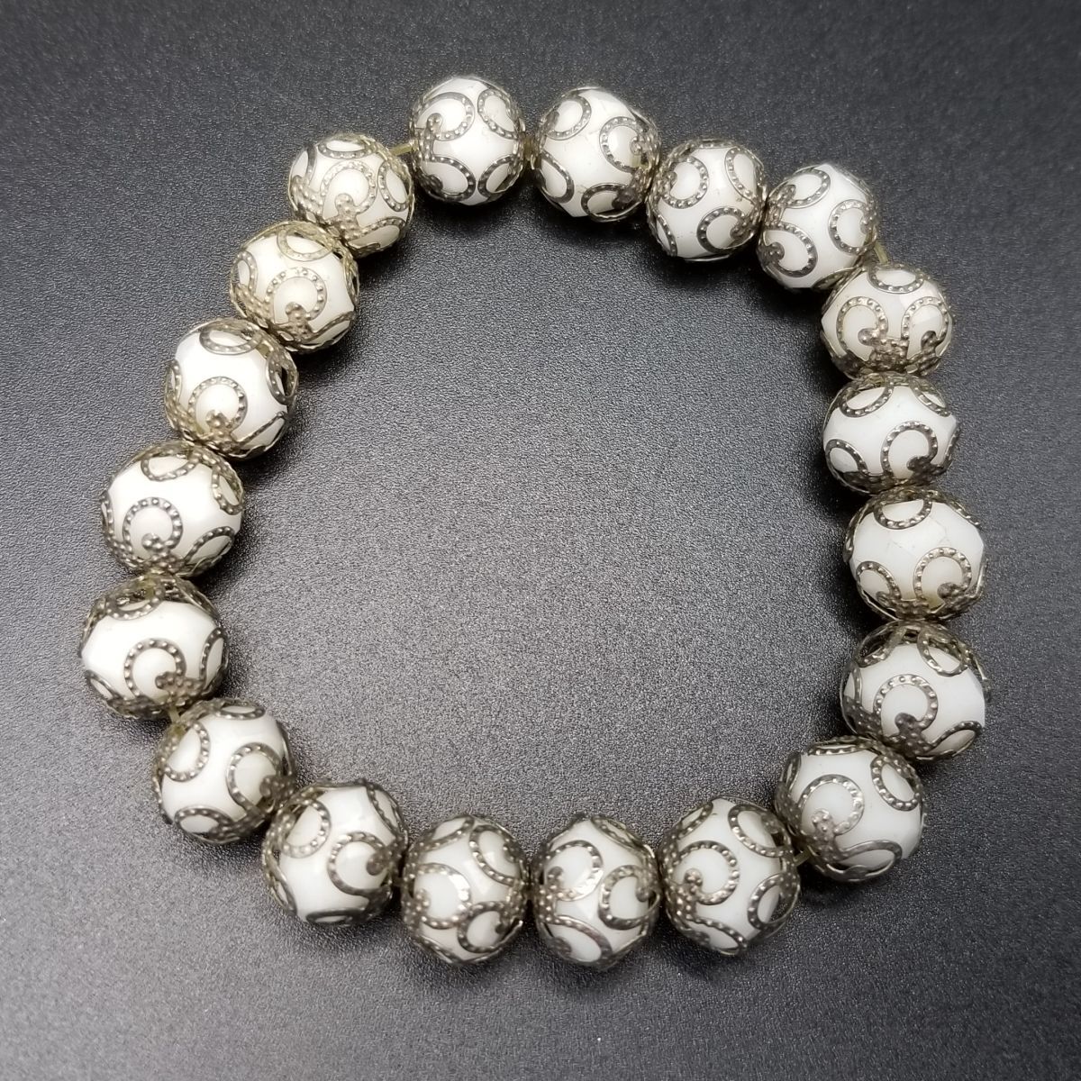 クラシカル レース装飾 ホワイトビーズ ヴィンテージ ブレスレット ゴムバンド レトロ ファッションジュエリー SFA