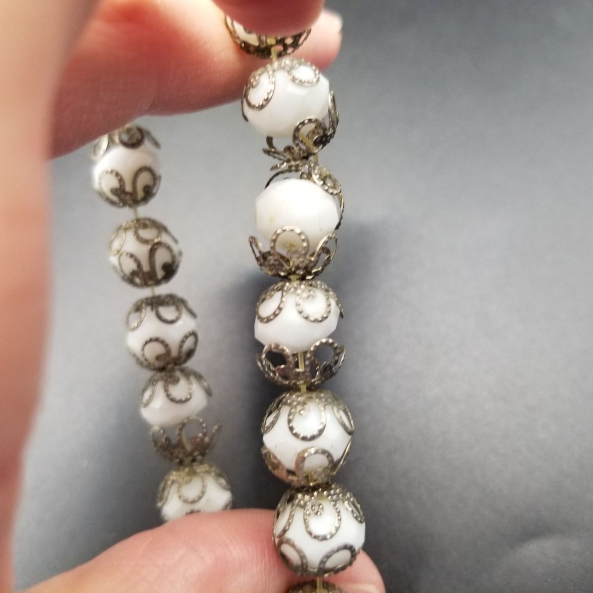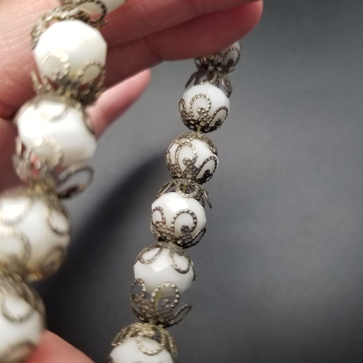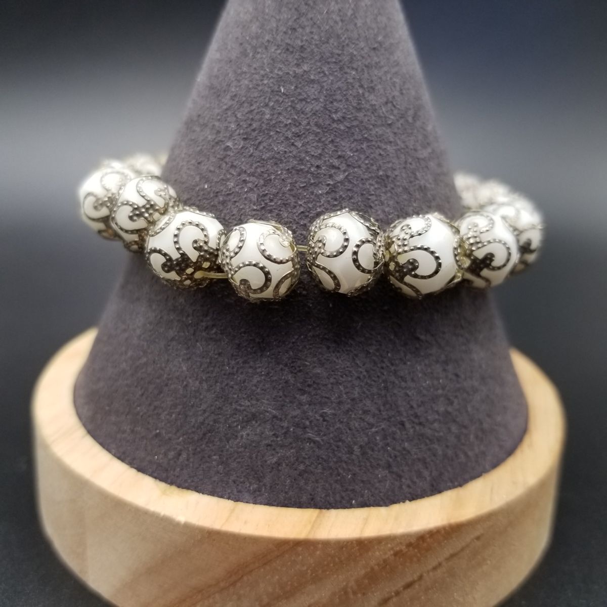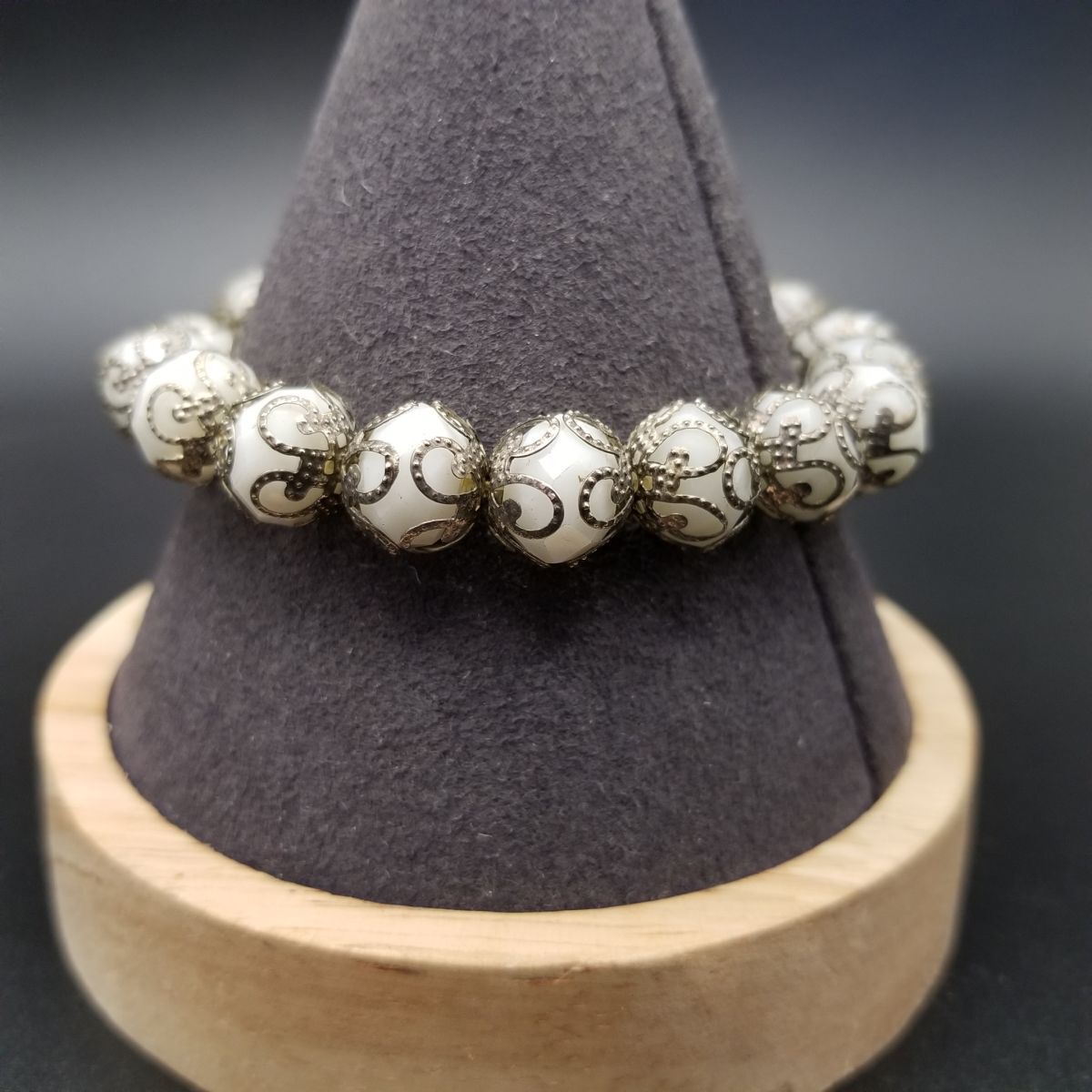 クラシカル レース装飾 ホワイトビーズ ヴィンテージ ブレスレット ゴムバンド レトロ ファッションジュエリー SFA