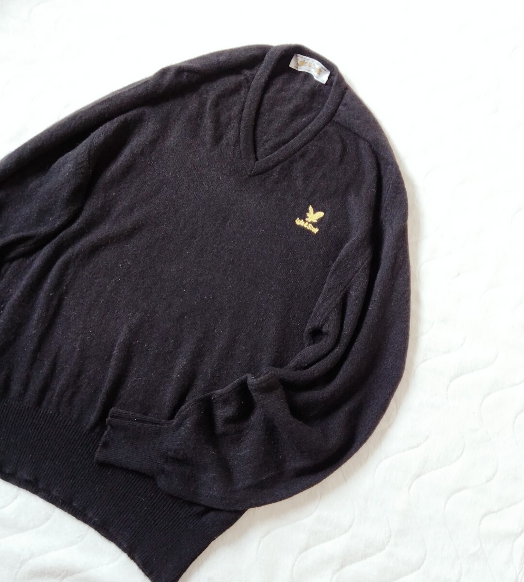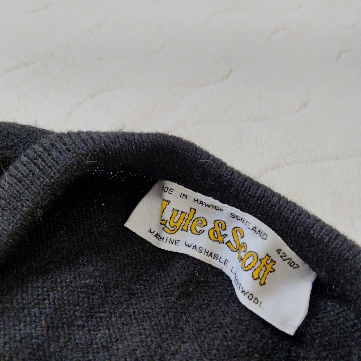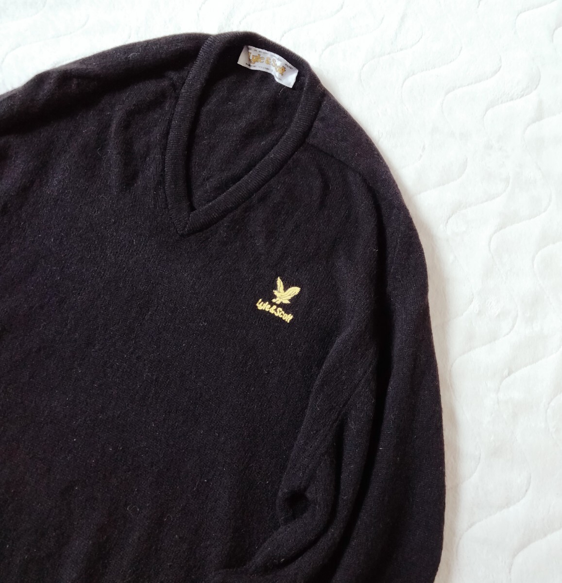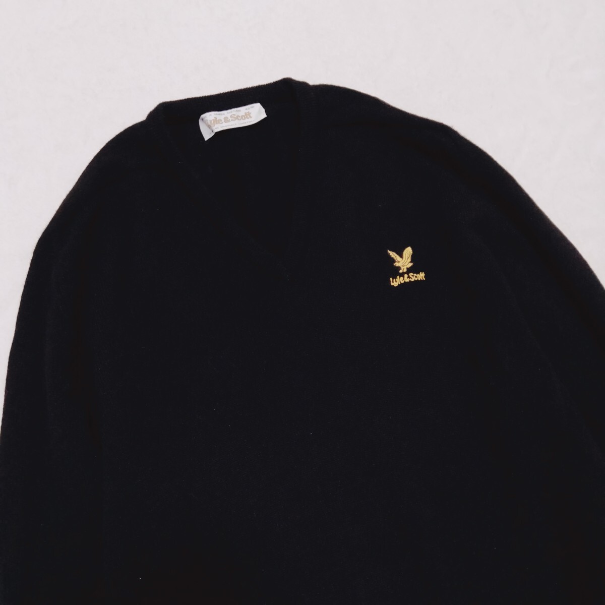 Lyle & Scott*ライルアンドスコット*Vネックニット*大きいサイズsize42*セーター*ビンテージ*スコットランド製*ラムウール*洗えます*黒*LL