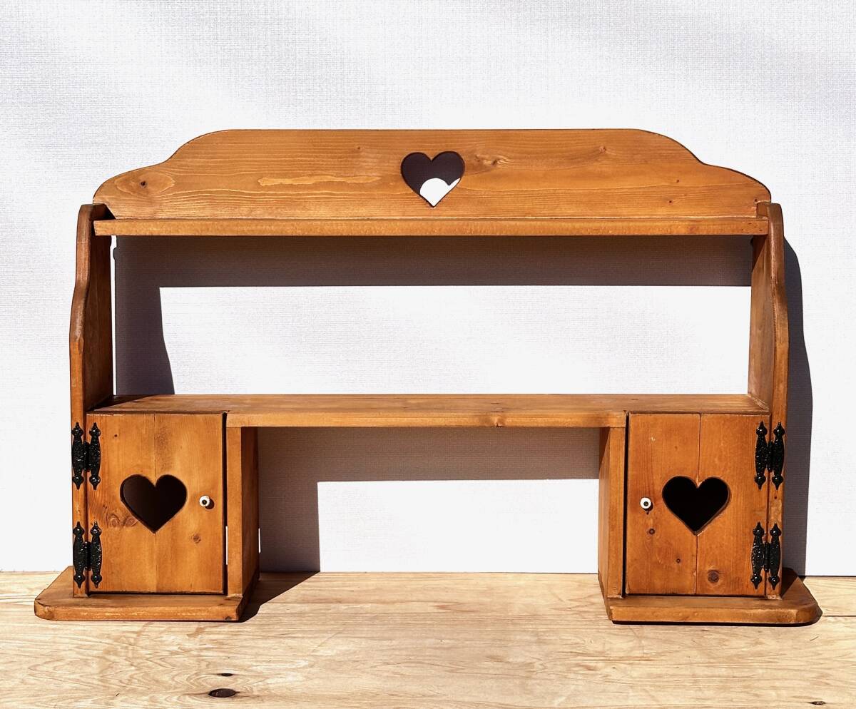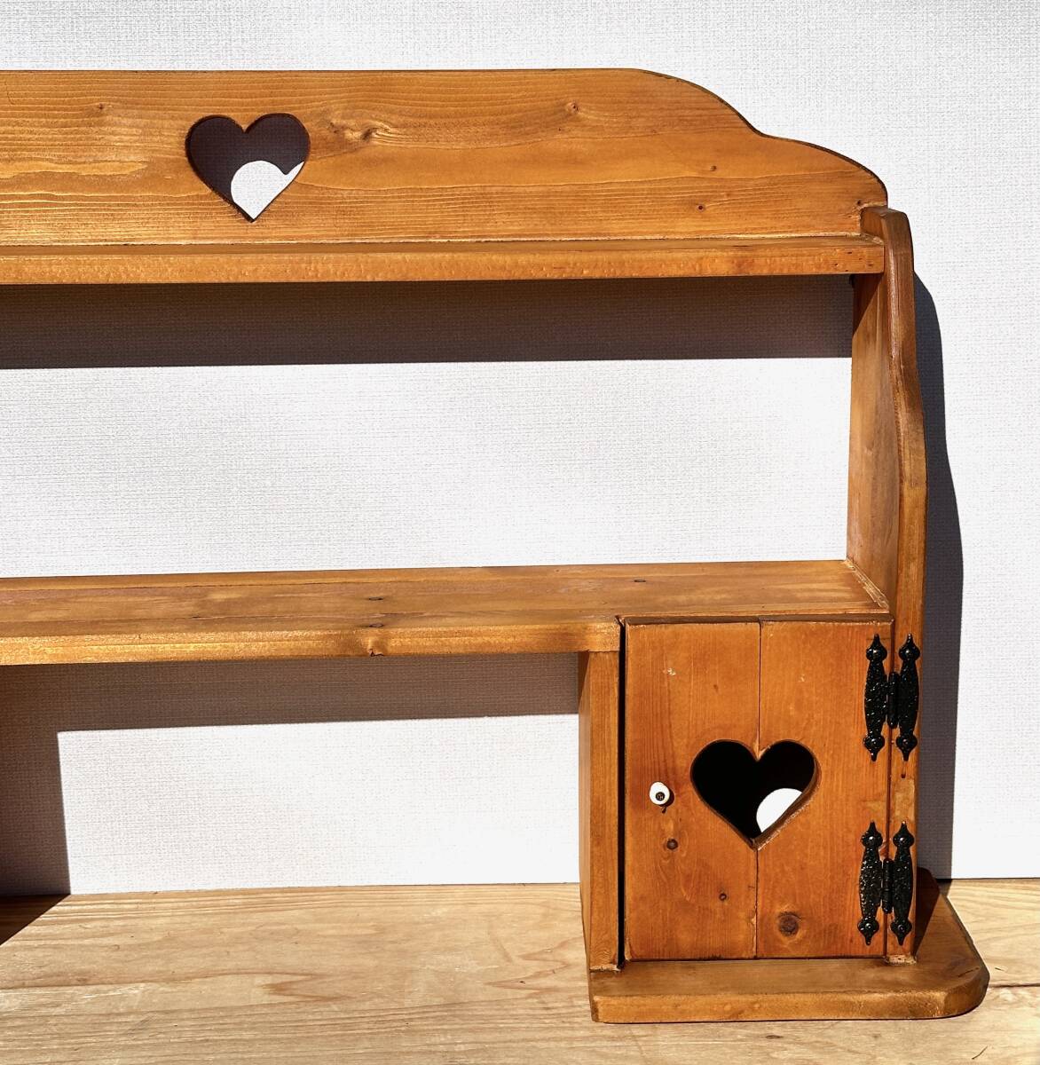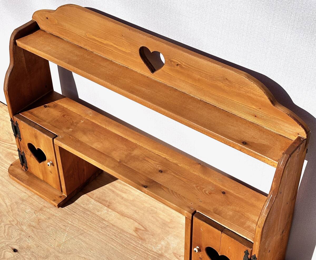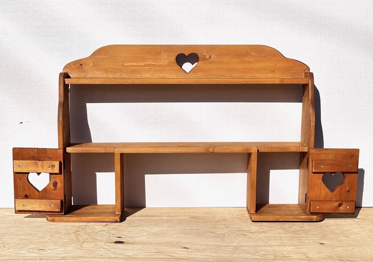 ビンテージ カントリー家具 ウォールシェルフ ハート透かし 壁掛け収納 幅100cm 高さ62cm