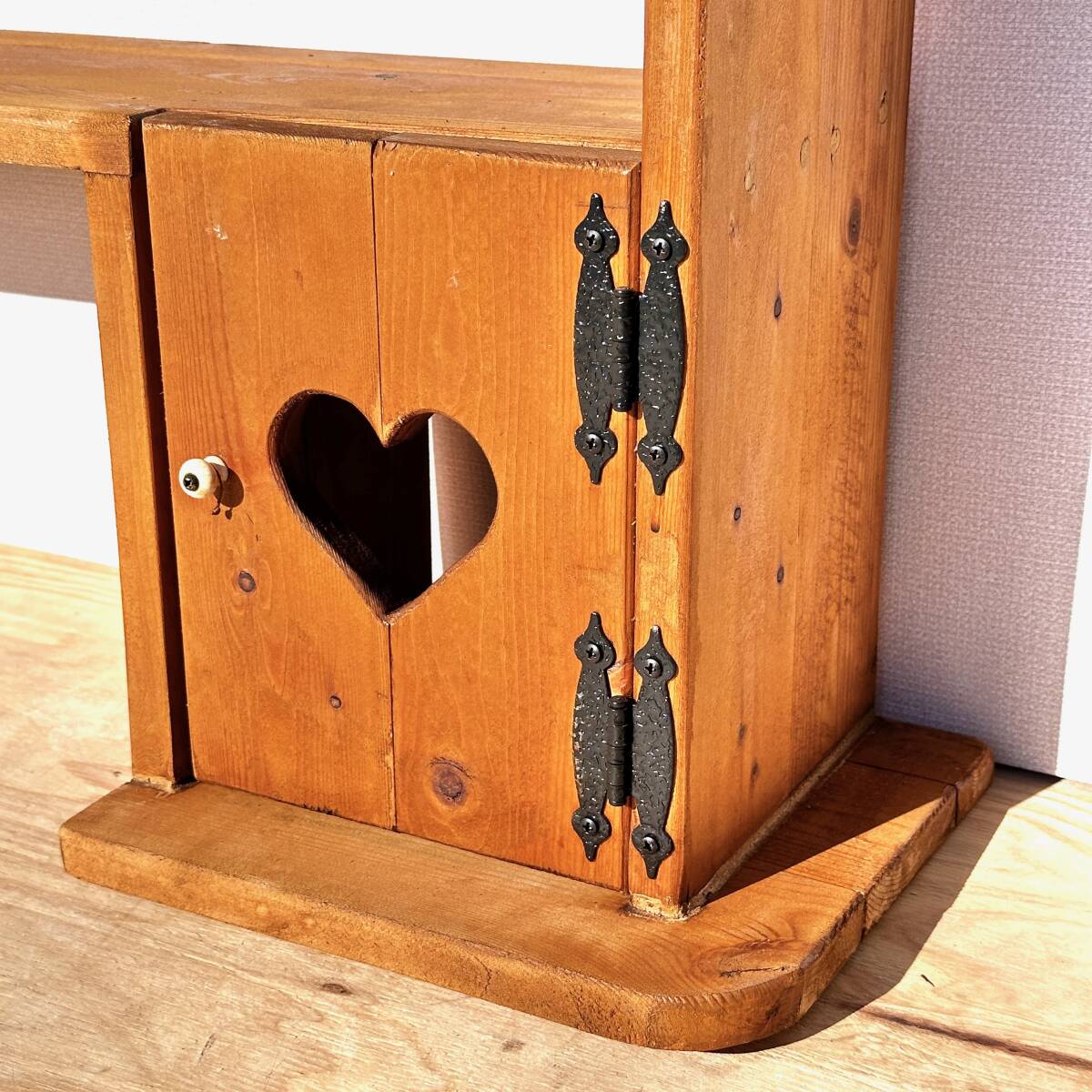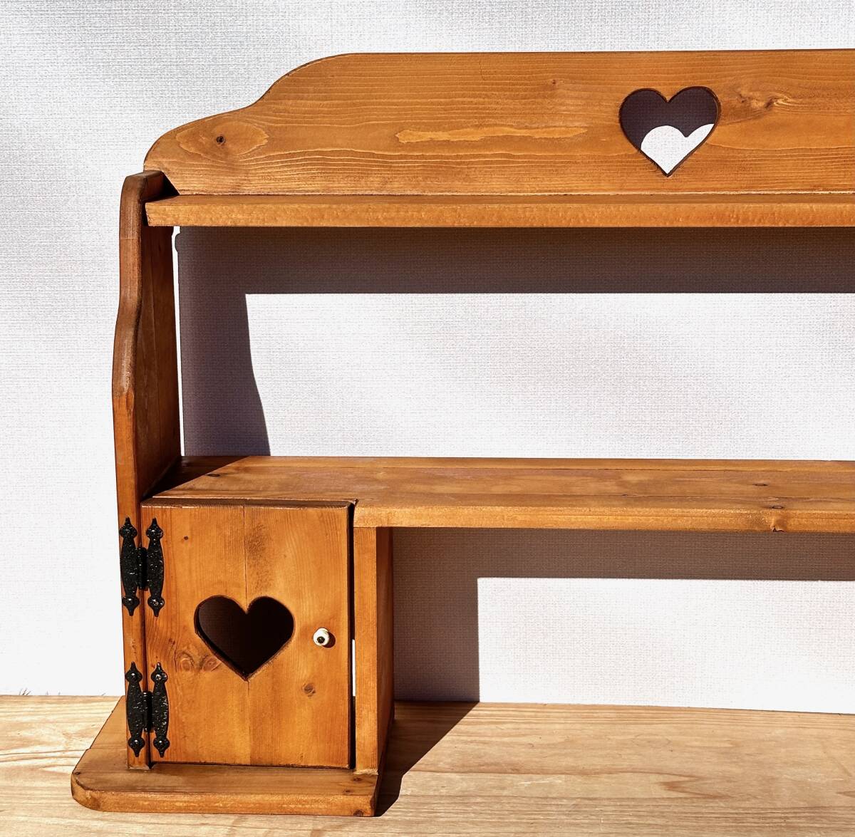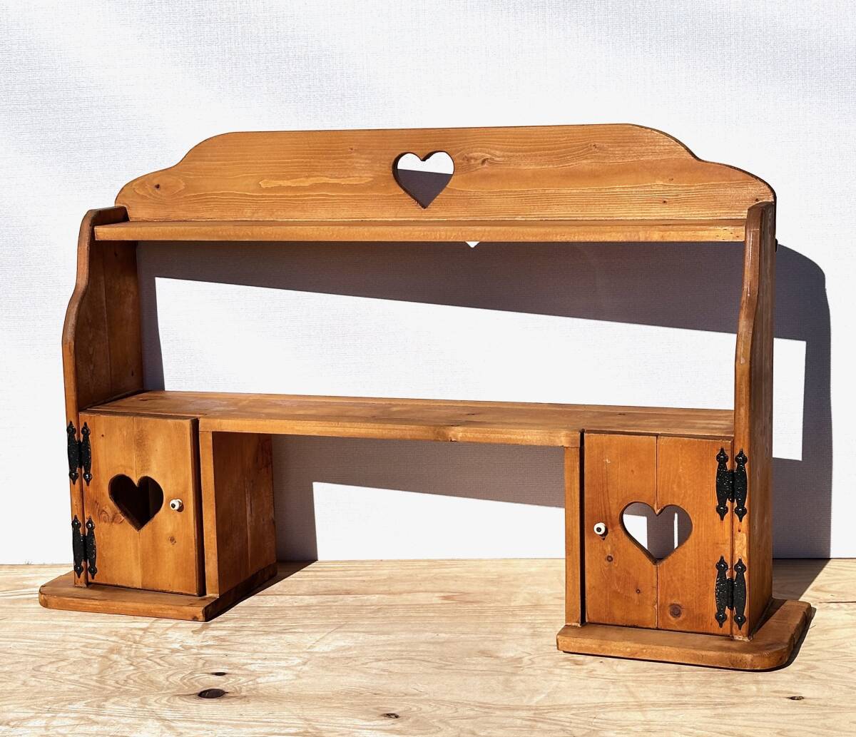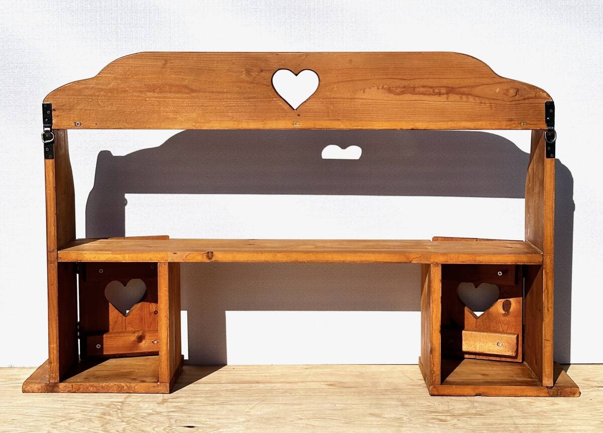 ビンテージ カントリー家具 ウォールシェルフ ハート透かし 壁掛け収納 幅100cm 高さ62cm