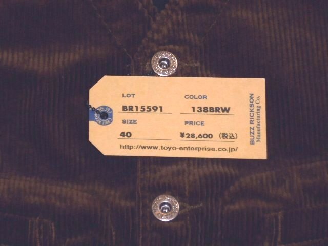 24 東洋 バズリクソンズ BR15591 138 ブラウン 40 コーデュロイ ベスト ドーナツボタン